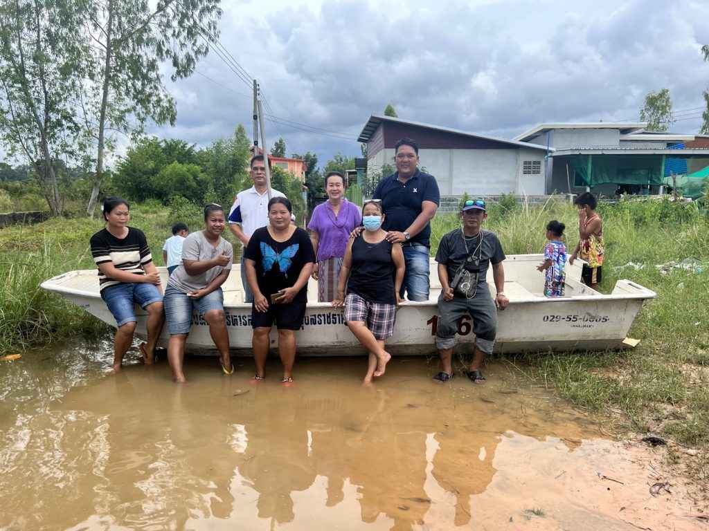 อบจ.อุบลราชธานี นำเรือท้องแบนพร้อมกำลังเจ้าหน้าที่ขนของหนีน้ำท่วมช่วยประชาชนในเขต อ.เมืองอุบลฯ