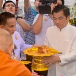 จากนั้นพระสงฆ์ 10 รูป เจริญชัยมงคลคาถา และถวายเครื่องไทธรรม เพื่อความเป็นสิริมงคล