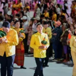 วันที่ 7 ตุลาคม 2568 นายกานต์ กัลป์ตินันท์ นายก อบจ.อุบลราชธานี มอบหมายให้นางกรรณิกา ตันติศิรินทร์ รองนายก อบจ.อุบลราชธานี พร้อมด้วยนายอภิรักษ์ นามบุตร รองนายก อบจ.อุบลราชธานี และหัวหน้าส่วนราชการ เป็นผู้แทนในนามจังหวัดอุบลราชธานี ร่วมขบวนแห่การแสดงแสง สี เสียงประเพณีชักพระ ทอดผ้าป่าและแข่งเรือยาว จังหวัดสุราษฎร์ธานี ประจำปี 2568 ได้นำขบวนนางรำจากมหแโรงเรียนพิบูลมังสาหาร (สังกัด อบจ.อุบลราชธานี) และต้นเทียนพรรษาประเภทแกะสลักขนาดกลาง จากวัดศรีแสงทอง ที่ได้รับรางวัลชนะเลิศ เข้าร่วมโชว์ในงาน โดยมีว่าที่ร้อยตรีกรกฎ ประเสริฐวงษ์รองผู้ว่าราชการจังหวัดอุบลราชธานี นายมวลชน กัลป์ตินันท์ ประธานสภา อบจ.อุบลราชธานี เข้าร่วมเป็นเกียรติในการแสดงแสง สี เสียงประกอบเรือพนมพระทางบกในพิธีด้วย