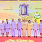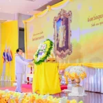 เมื่อประธานในพิธีเดินทางถึงบริเวณพิธี ได้ถวายความเคารพ พระบรมฉายาลักษณ์ พระบาทสมเด็จพระบรมชนกาธิเบศร มหาภูมิพลอดุลยเดชมหาราช บรมนาถบพิตร พร้อมกับผู้ร่วมพิธี จากนั้นได้ถวายพวงมาลา กล่าวน้อมรำลึกในพระมหากรุณาธิคุณ และร่วมยืนสงบนิ่ง เพื่อแสดงความอาลัยและสำนึกในพระมหากรุณาธิคุณอันหาที่สุดมิได้