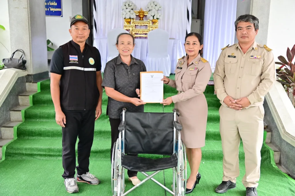 อบจ.อุบลราชธานี มอบรถวีลแชร์ช่วยเหลือประชาชนผ่าน อบต.ยางสักกะโพหลุ่ม อำเภอม่วงสามสิบ