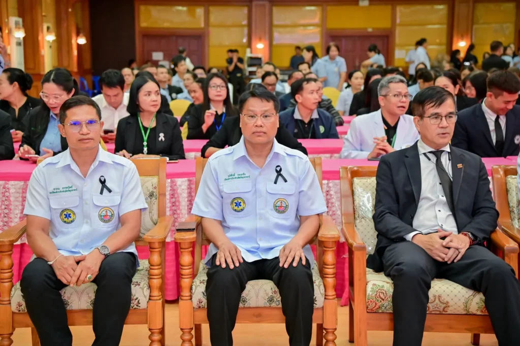 ก่อนเริ่มพิธีการภายในห้องประชุมได้ยืนสงบนิ่ง เพื่อถวายความอาลัยแสมเด็จพระนางเจ้าสิริกิติ์ พระบรมราชินีนาถ พระบรมราชชนนีพันปีหลวง จากนั้นเป็นพิธีเจริญพระพุทธมนต์ เพื่อความเป็นสิริมงคล โดยได้รับเมตตาธรรม จาก พระราชธรรมสุธี เจ้าคณะจังหวัดอุบลราชธานี (ธรรมยุต) เจ้าอาวาสวัดศรีอุบลรัตนาราม พระอารามหลวง และ พิธีการลงนามความร่วมมือความร่วมมือการบริหารจัดการหน่วยปฏิบัติการแพทย์ระดับสูงของโรงพยาบาลส่งเสริมสุขภาพตำบล (รพ.สต.) ในสังกัดองค์การบริหารส่วนจังหวัดอุบลราชธานี