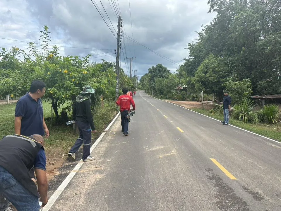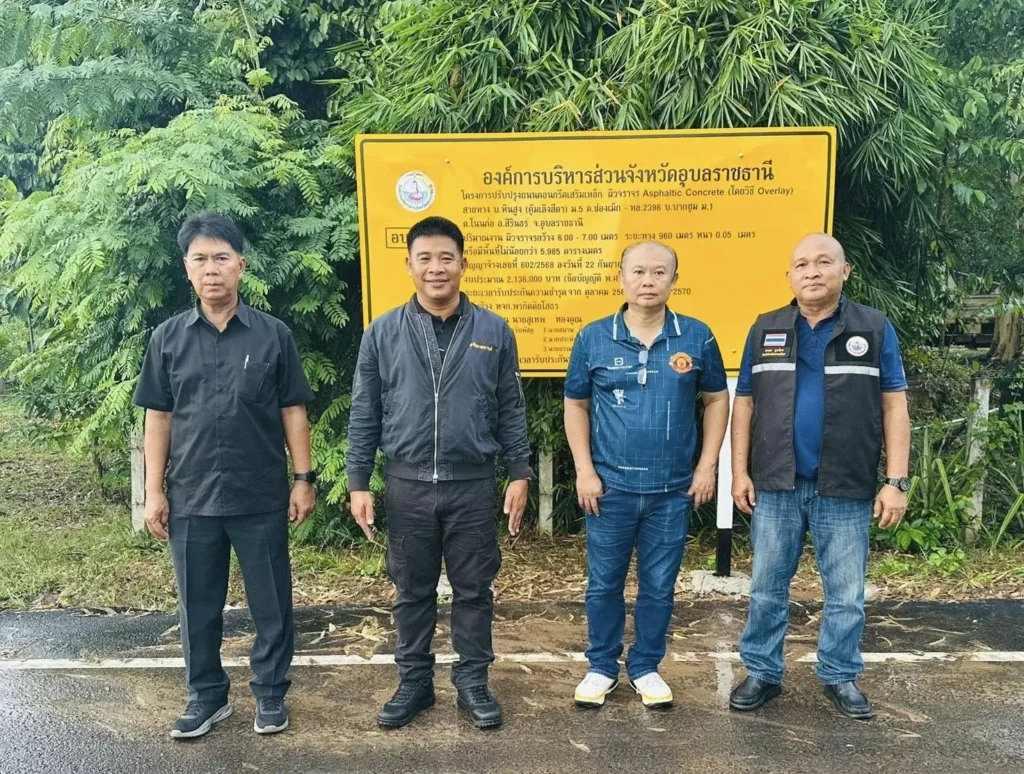 ออกตรวจสอบโครงการปรับปรุงถนนคอนกรีตเสริมเหล็ก ผิวจราจร Asphaltic Concrete (โดยวิธี Overlay) สายบ้านหินสูง (คุ้มเลิงสีดา) หมู่ที่ 5 ตำบลช่องเม็ก - ทางหลวงแผ่นดินหมายเลข 2396 - บ้านบากชุม หมู่ที่ 1 ตำบลโนนก่อ อำเภอสิรินธร จังหวัดอุบลราชธานี