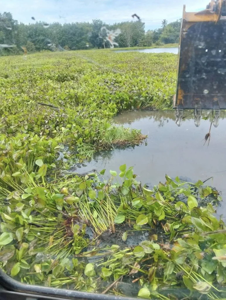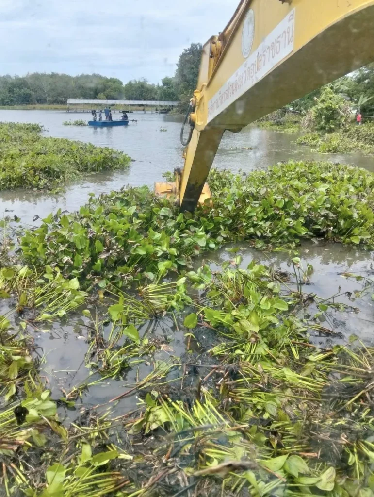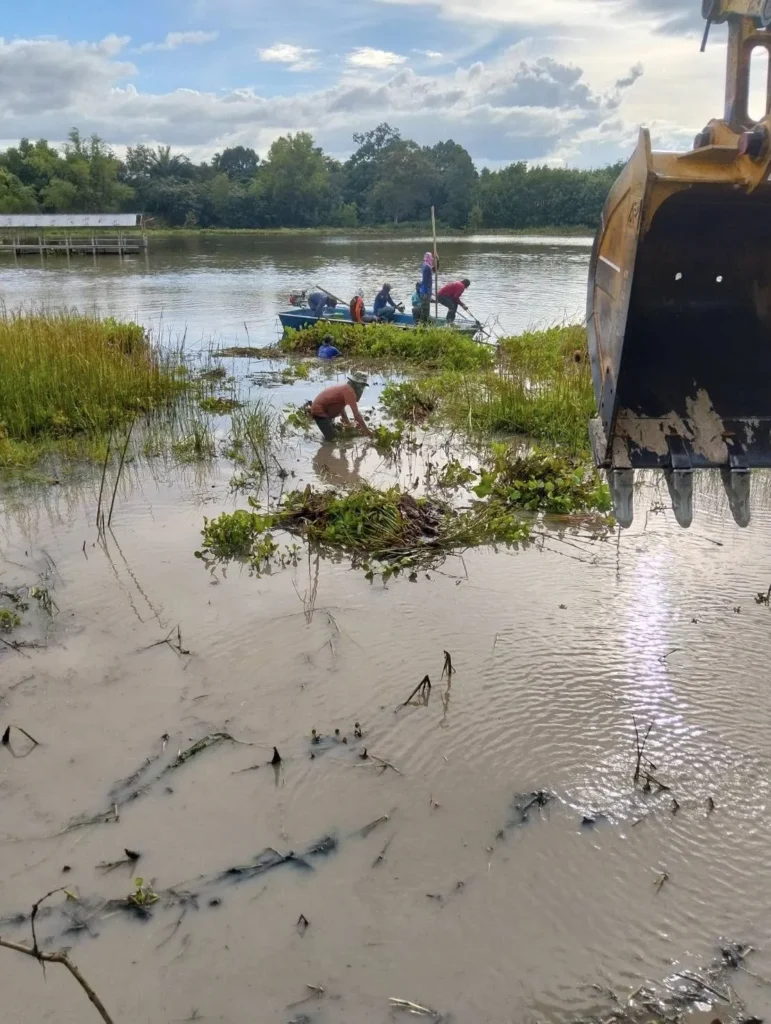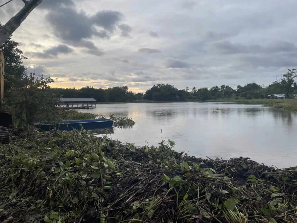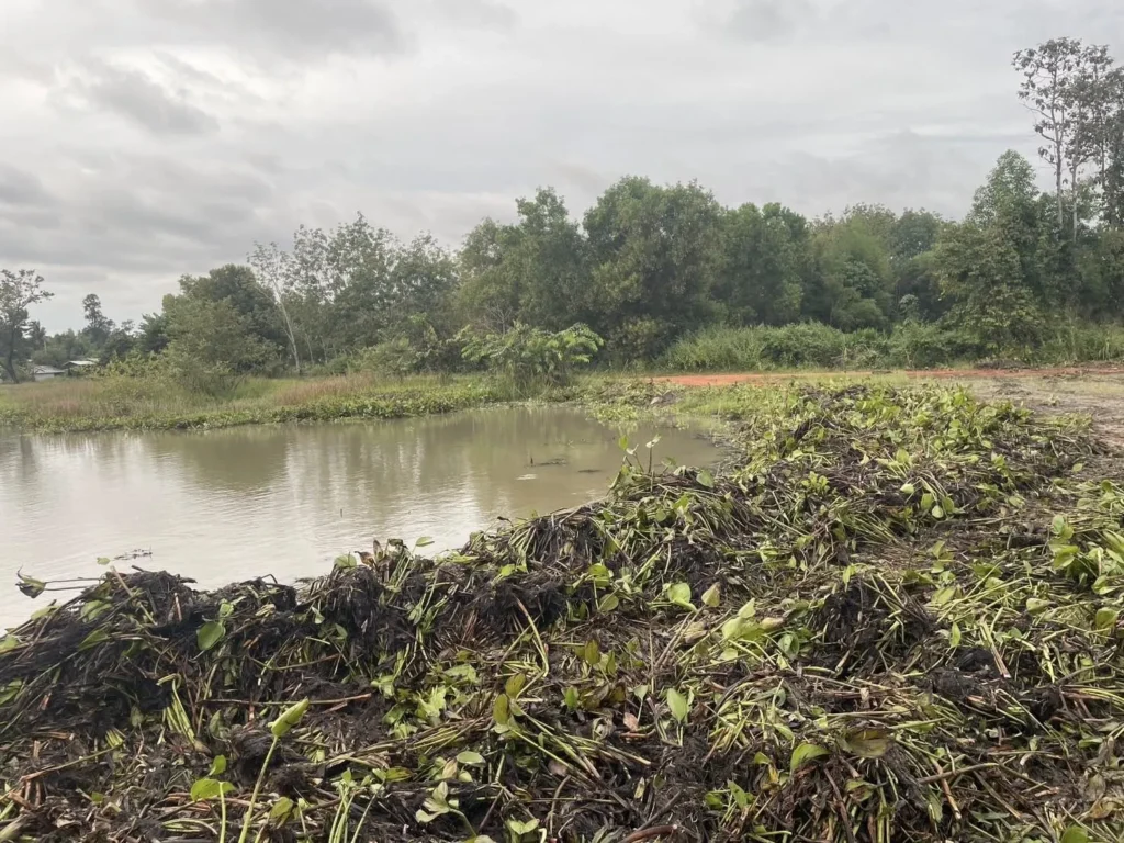 อบจ.อุบลราชธานี สนับสนุนขุดลอกผักตบชวาในหนองน้ำสาธารณะบ้านหนองแวง