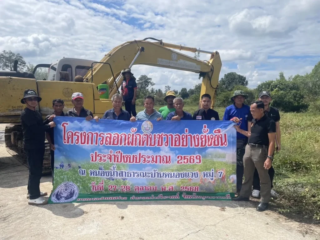 วันที่ 31 ตุลาคม 2568 นาย กานต์ กัลป์ตินันท์ นายกองค์การบริหารส่วนจังหวัดอุบลราชธานี ได้สนับสนุนเจ้าหน้าที่ และเครื่องจักรกล รถแบ็คโฮ จากกองทรัพยากรธรรมชาติและสิ่งแวดล้อม เข้าดำเนินการขุดลอกผักตบชวา ในหนองน้ำสาธารณะบ้านหนองแวง หมู่ 7 ภายใต้โครงการ ลอกผักตบชวาอย่างยั่งยืน ประจำปีงบประมาณ 2569