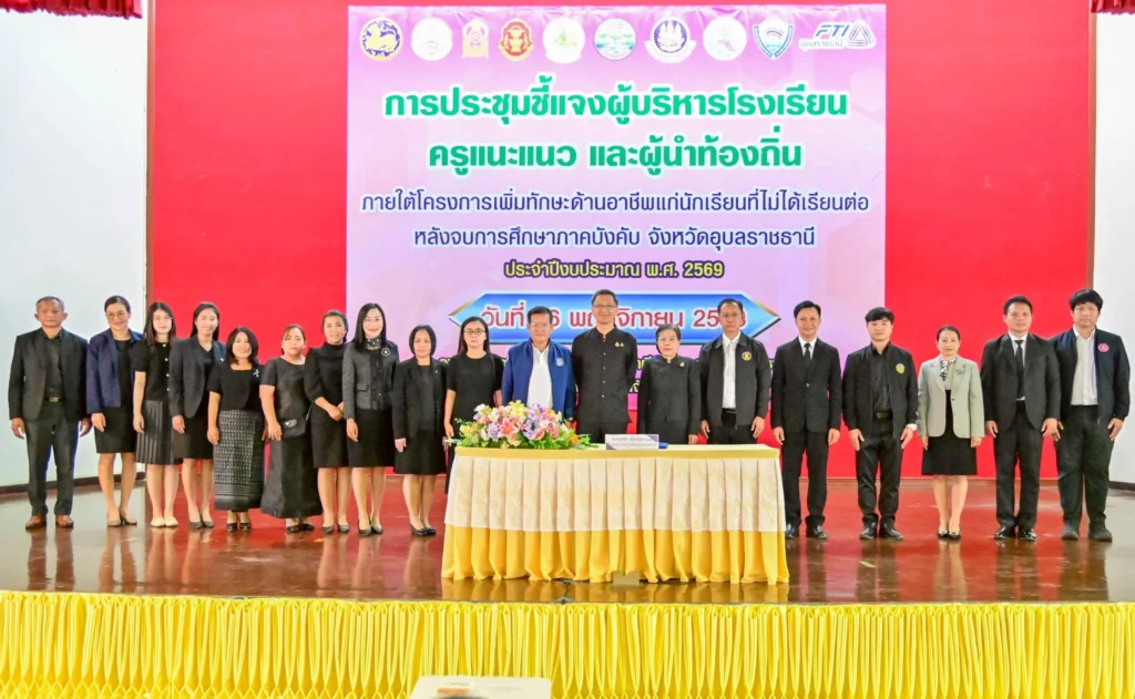 วันที่ 26 พฤศจิกายน 2568 นายกานต์ กัลป์ตินันท์ นายกองค์การบริหารส่วนจังหวัดอุบลราชธานี มอบหมายให้ ดร.ทรงศักดิ์ ทุงจันทร์ ผู้อำนวยการสำนักการศึกษา ศาสนาและวัฒนธรรม อบจ.อุบลราชธานี เข้าร่วมประชุม โครงการเตรียมความพร้อมแก่กลุ่มเป้าหมายก่อนเข้าสู่ตลาดแรงงาน ในกิจกรรมประชุมชี้แจงให้ความรู้ เรื่อง โครงการเพิ่มทักษะด้านอาชีพแก่นักเรียนที่ไม่ได้เรียนต่อหลังจบการศึกษาภาคบังคับ ประจำปีงบประมาณ พ.ศ.2569 ณ อาคารเอนกประสงค์ สถาบันพัฒนาฝีมือแรงงาน 7 อุบลราชธานี โดยมีผู้อำนวยการโรงเรียน ครูแนะแนว บุคลากรทางการศึกษา และผู้นำท้องถิ่น เข้าร่วมจำนวน 882 คน