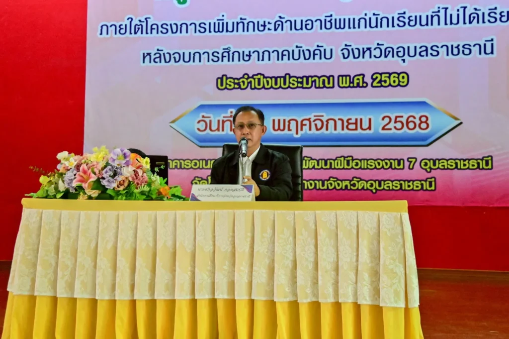 สำนักงานจัดหางานจังหวัดอุบลราชธานี ได้จัดกิจกรรมดังกล่าวขึ้น เพื่อเสริมสร้างความรู้ ความเข้าใจ และการรับรู้เกี่ยวกับแนวทางการดำเนินงานของโครงการพัฒนาทักษะอาชีพสำหรับเยาวชนที่ไม่ได้ศึกษาต่อหลังภาคบังคับ เพื่อให้สามารถเตรียมความพร้อมด้านอาชีพ เพิ่มโอกาสในการมีงานทำ และพัฒนาทักษะที่เหมาะสมต่อความต้องการของตลาดแรงงานปัจจุบัน