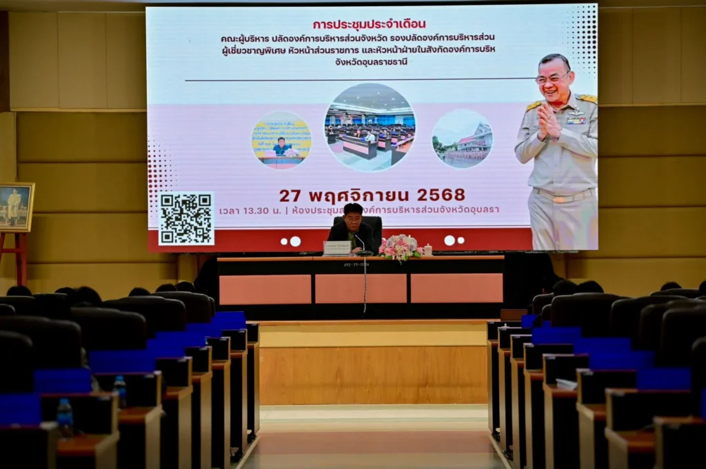 วันที่ 27 พฤศจิกายน 2568 เวลา 14.00 น. นายกานต์ กัลป์ตินันท์ นายกองค์การบริหารส่วนจังหวัดอุบลราชธานี มอบหมายให้ นายประพนธ์ โชควิวัฒนวนิช รองนายกองค์การบริหารส่วนจังหวัดอุบลราชธานี เป็นประธานการประชุมผู้บริหาร ปลัดองค์การบริหารส่วนจังหวัด รองปลัดองค์การบริหารส่วนจังหวัด ผู้เชี่ยวชาญพิเศษ หัวหน้าส่วนราชการ และหัวหน้าฝ่ายในสังกัดองค์การบริหารส่วนจังหวัดอุบลราชธานี ประจำเดือนพฤศจิกายน 2568 ณ ห้องประชุมสภาองค์การบริหารส่วนจังหวัดอุบลราชธานี ชั้น 3