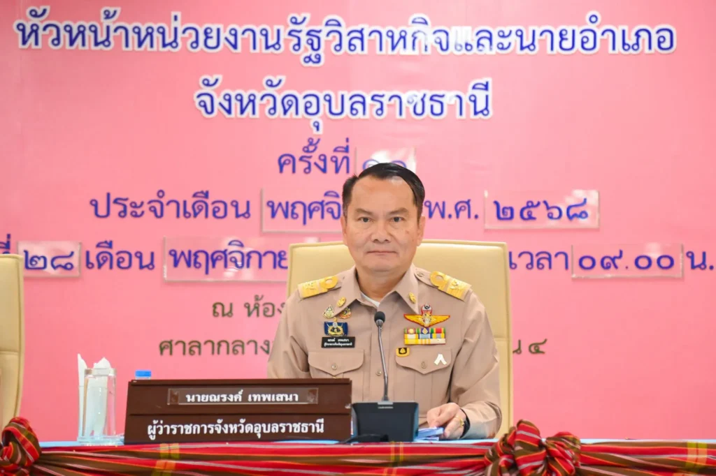 วันที่ 28 พฤศจิกายน 2568 เวลา 09.00 น. นายกานต์ กัลป์ตินันท์ นายกองค์การบริหารส่วนจังหวัดอุบลราชธานี เข้าประชุมคณะกรมการจังหวัดอุบลราชธานี ประจำเดือนพฤศจิกายน โดยมีนายณรงค์ เทพเสนา ผู้ว่าราชการจังหวัดอุบลราชธานี เป็นประธานการประชุม ซึ่งมีรองผู้ว่าราชการจังหวัด นายอำเภอทั้ง 25 อำเภอ หัวหน้าส่วนราชการ หน่วยงานรัฐวิสาหกิจ และคณะกรรมการร่วมภาคเอกชน 3 สถาบัน เข้าร่วมประชุมอย่างพร้อมเพรียง ณ ห้องประชุมพรหมวรราช ชั้น 4 ศาลากลางจังหวัดอุบลราชธานี