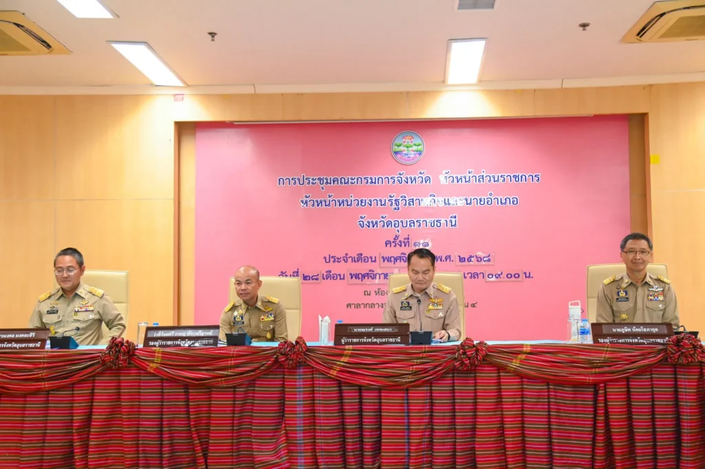 ในที่ประชุมได้มีการแนะนำหัวหน้าส่วนราชการที่ได้รับการแต่งตั้งและโยกย้ายมาดำรงตำแหน่งใหม่ จากนั้นผู้ว่าราชการจังหวัดอุบลราชธานีได้มอบนโยบายเพื่อขับเคลื่อนการดำเนินงานตามนโยบายของรัฐบาล พร้อมทั้งรับทราบและติดตามความก้าวหน้าตามแผนงานและโครงการสำคัญของจังหวัดนอกจากนี้ ที่ประชุมยังได้หารือและบูรณาการความร่วมมือระหว่างส่วนราชการและหน่วยงานที่เกี่ยวข้อง เพื่อให้การบริหารราชการและการพัฒนาจังหวัดอุบลราชธานีเป็นไปด้วยความเรียบร้อย มีประสิทธิภาพ และเกิดประโยชน์สูงสุดต่อประชาชนในพื้นที่