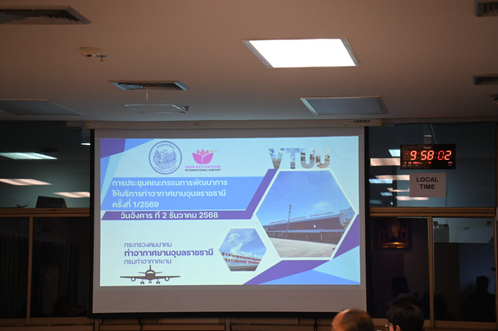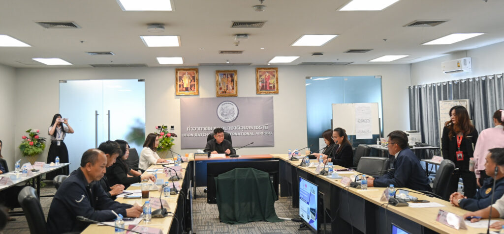 โดยที่ประชุมแจ้งให้ทราบความคืบหน้าและผลการดำเนินงาน ระหว่างเดือนกรกฎาคม – พฤศจิกายน 2568 รายงานสถิติการขนส่งทางอากาศ จากนั้นพิจารณาการตัดต้นไม้ใหญ่ภายในบริเวณท่าอากาศยานอุบลราชธานี กิจกรรมลงพื้นที่ประชาสัมพันธ์ให้ความรู้ด้านการบินแก่ประชาชนที่อาศัยในชุมชนบริเวณใกล้เคียงท่าอากาศยานอุบลราชธานี การบริหารจัดการคลองระบายน้ำท่าอากาศยานอุบลราชธานี และการเปิดให้เช่าพื้นที่จำหน่ายสินค้าบริเวณภายใน และภายนอกอาคารผู้โดยสาร ทั้งนี้ ข้อเสนอแนะจากทุกภาคส่วนที่เข้าร่วมประชุมจะถูกนำไปประกอบการวางแผนพัฒนาท่าอากาศยานอุบลราชธานีอย่างเป็นระบบ เพื่อให้การบริการมีความสะดวก ปลอดภัย ทันสมัย และสอดคล้องกับศักยภาพด้านการท่องเที่ยวและการคมนาคมของจังหวัดอุบลราชธานีต่อไป
