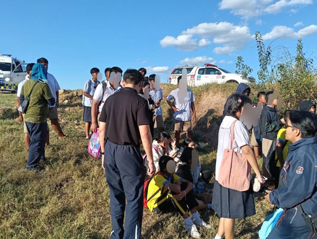 เบื้องต้นมีเด็กนักเรียนได้รับบาดเจ็บตั้งแต่ชั้นอนุบาล – ม.6 และครูประจำรถรับส่งบาดเจ็บทั้งหมด 14 ราย