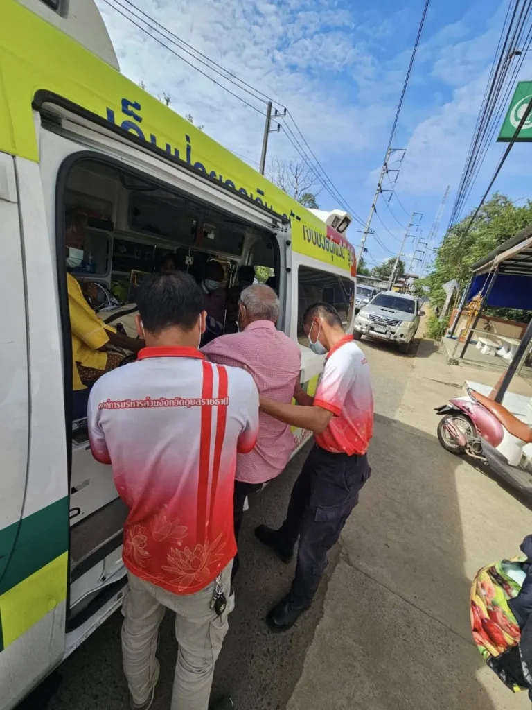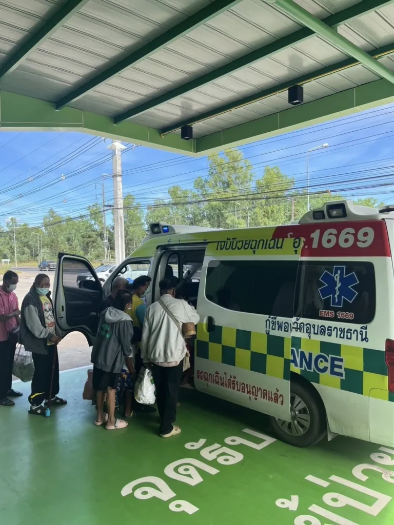 - 12.54น. รับ-ส่งผู้ป่วย จากศูนย์พักพิง นำส่งรักษาที่ รพร.เดชอุดม จำนวน 1 ราย