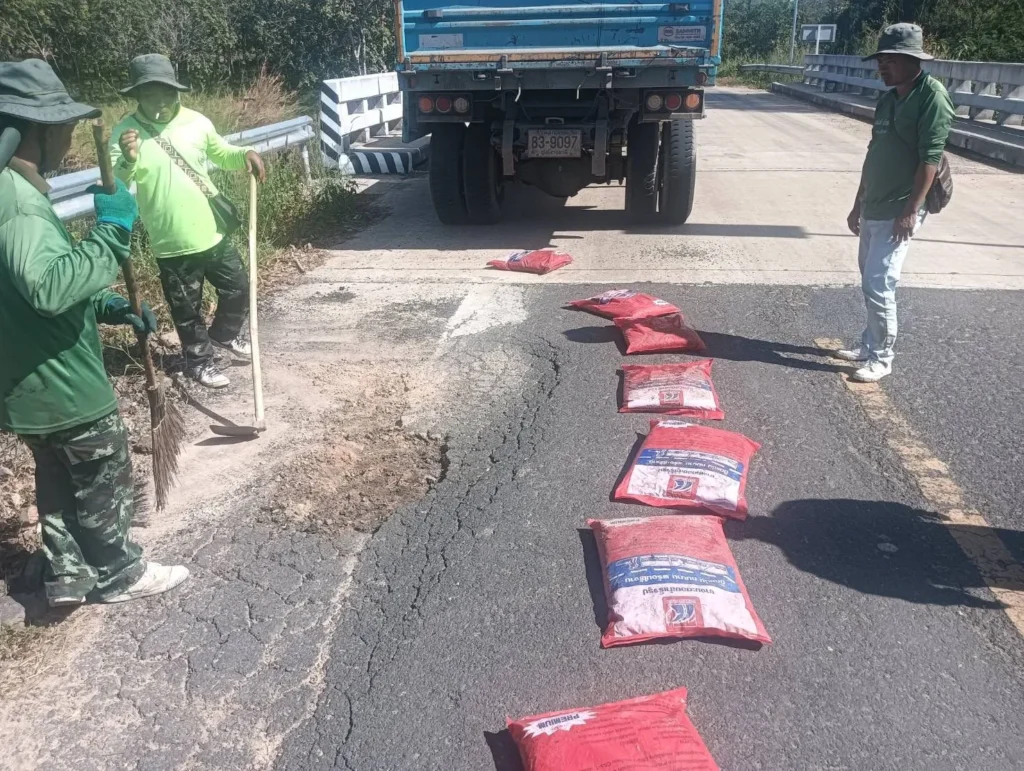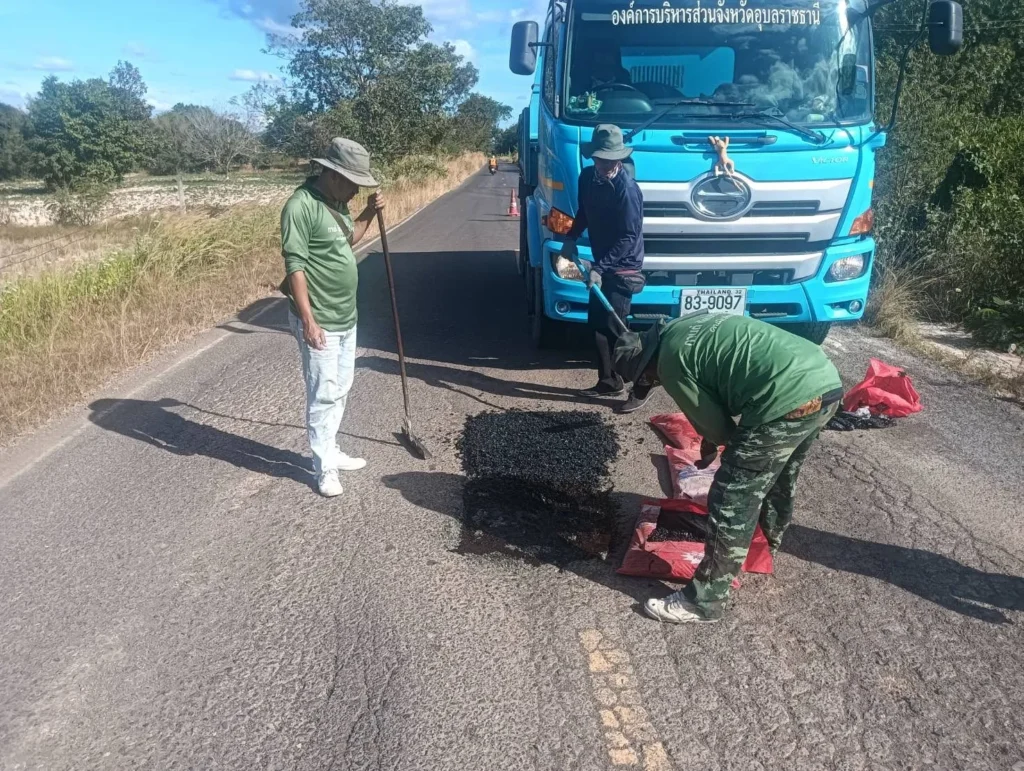 นายกานต์ กัลป์ตินันท์ นายก อบจ.อุบลราชธานี สั่งการให้ เจ้าหน้าที่กองช่าง ดำเนินการซ่อมแซมพื้นผิวจราจรชำรุด ทางหลวงท้องถิ่นองค์การบริหารส่วนจังหวัดอุบลราชธานี