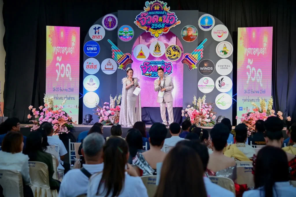 วันที่ 18 ธันวาคม 2568 นายกานต์ กัลป์ตินันท์ นายกองค์การบริหารส่วนจังหวัดอุบลราชธานี มอบหมายให้นางกรรณิกา ตันติศิรินทร์ รองนายกองค์การบริหารส่วนจังหวัดอุบลราชธานี ร่วมเป็นเกียรติในพิธีเปิดงาน “จ๊วด & นัว เฟสติวัล 2568” และ “จ๊วด – #เทศกาลหมอลำแห่งทุ่งคำน้ำแซบ” โดยมีร้อยตรี สรมงคล มงคละสิริ รองผู้ว่าราชการจังหวัดอุบลราชธานี เป็นประธานเปิดงาน