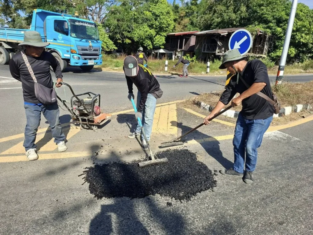 นายกานต์ กัลป์ตินันท์ นายก อบจ.อุบลราชธานี สั่งการให้ เจ้าหน้าที่กองช่าง ดำเนินการซ่อมแซมพื้นผิวจราจรชำรุด ทางหลวงท้องถิ่นองค์การบริหารส่วนจังหวัดอุบลราชธานี 2 สาย
