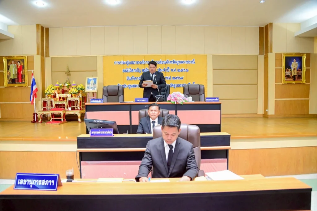 วันที่ 23 ธันวาคม 2568 เวลา 14.00 น. นายมวลชน กัลป์ตินันท์ ประธานสภาองค์การบริหารส่วนจังหวัดอุบลราชธานี เรียกประชุมสภาองค์การบริหารส่วนจังหวัดอุบลราชธานี สมัยวิสามัญ สมัยที่ 1 ประจำปี พ.ศ.2568 ซึ่งมีสมาชิกสภาองค์การบริหารส่วนจังหวัดอุบลราชธานี เข้าร่วมประชุมอย่างพร้อมเพรียง โดยมี นายกานต์ กัลป์ตินันท์ นายกองค์การบริหารส่วนจังหวัดอุบลราชธานี พร้อมคณะผู้บริหาร หัวหน้าส่วนราชการ ผู้บริหารสถานศึกษา ผู้แทน รพ.สต.ในสังกัดฯ เข้าร่วมประชุม ณ ห้องประชุมสภาองค์การบริหารส่วนจังหวัดอุบลราชธานี ชั้น 3