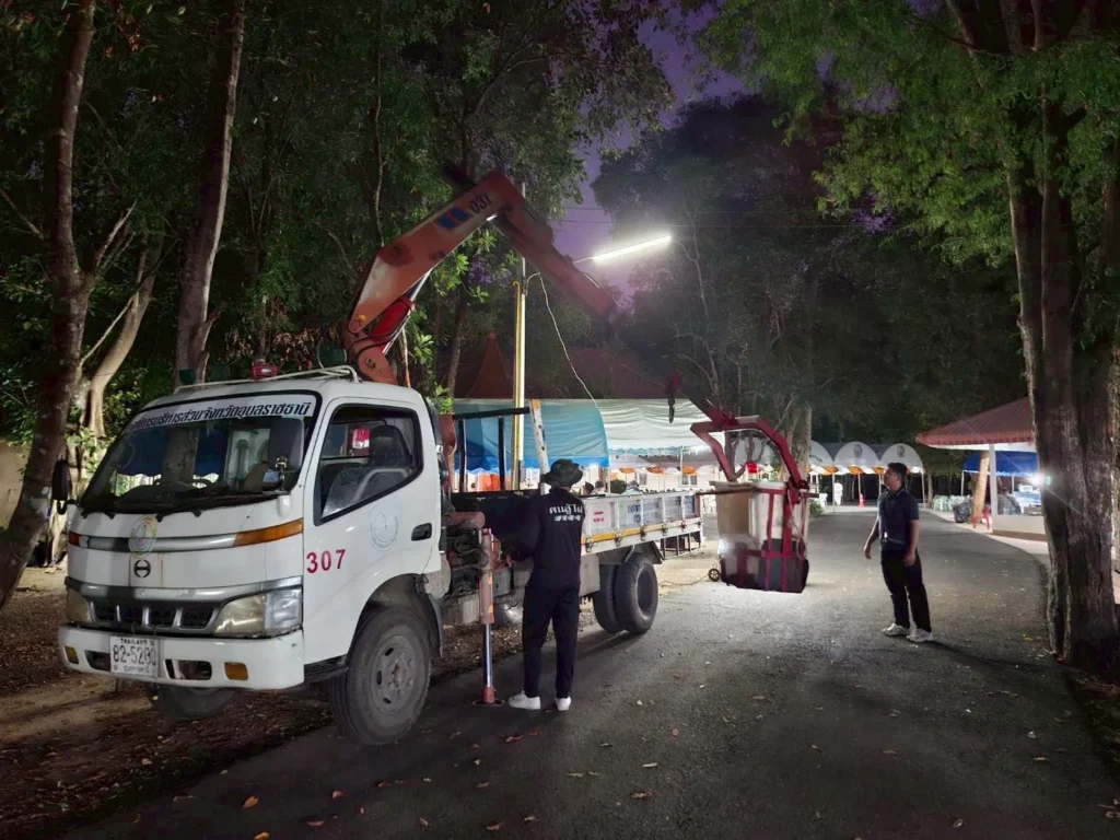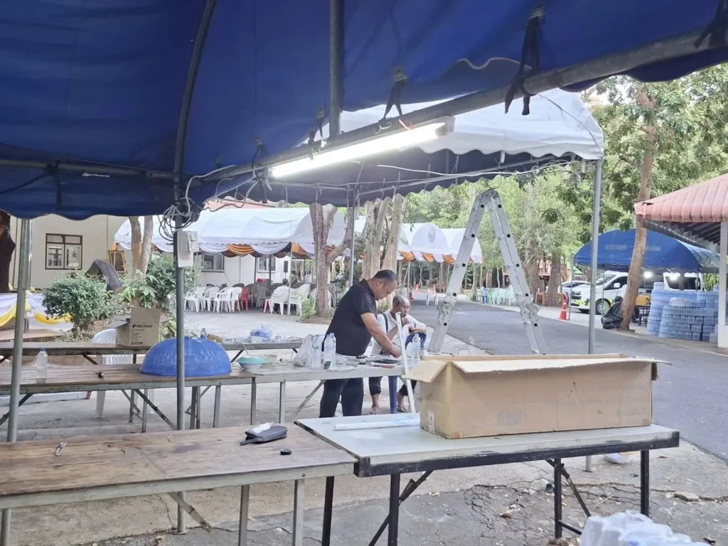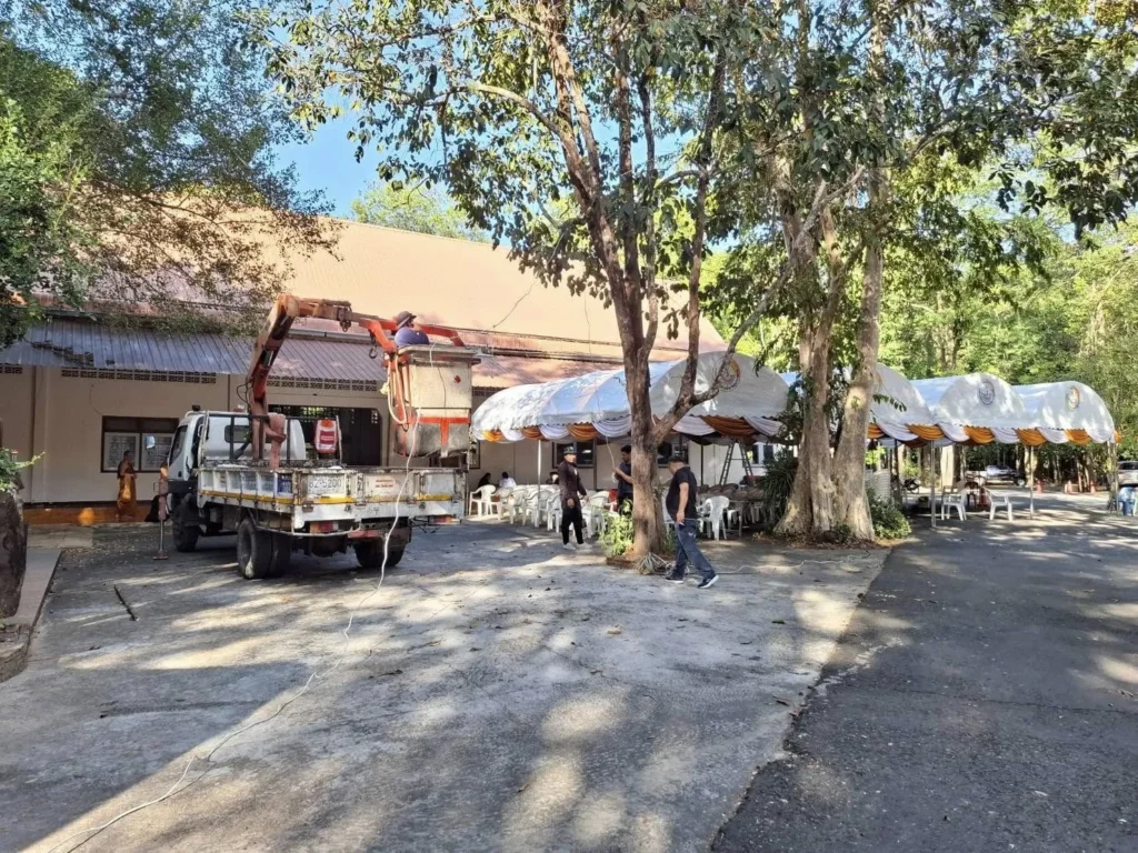 วันที่ 25 ธันวาคม 2568 นายกานต์ กัลป์ตินันท์ นายกองค์การบริหารส่วนจังหวัดอุบลราชธานี สั่งการให้ เจ้าหน้าที่ฝ่ายป้องกันและบรรเทาสาธารณภัย ออกปฏิบัติงาน ติดตั้งไฟส่องสว่าง เพื่อจัดเตรียมสถานที่พิธีพระราชทานน้ำหลวงสรงศพ พระราชวัชรมงคล (หลวงปู่สี. สิริญาโณ ) ณ. วัดป่าศรีมงคล สาขาที่13 วัดหนองป่าพง ตำบลโนนกาเล็น อำเภอสำโรง จังหวัดอุบลราชธานี