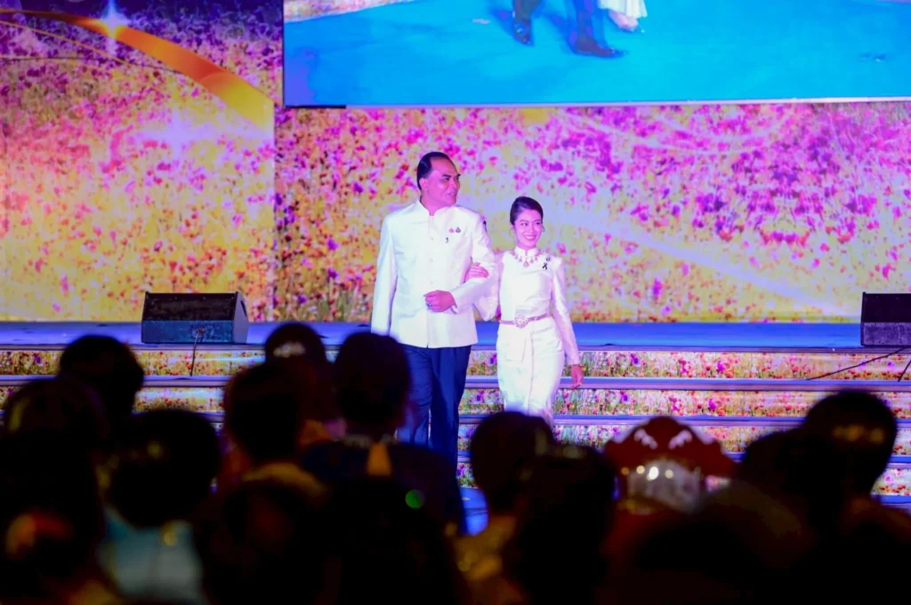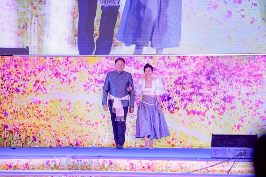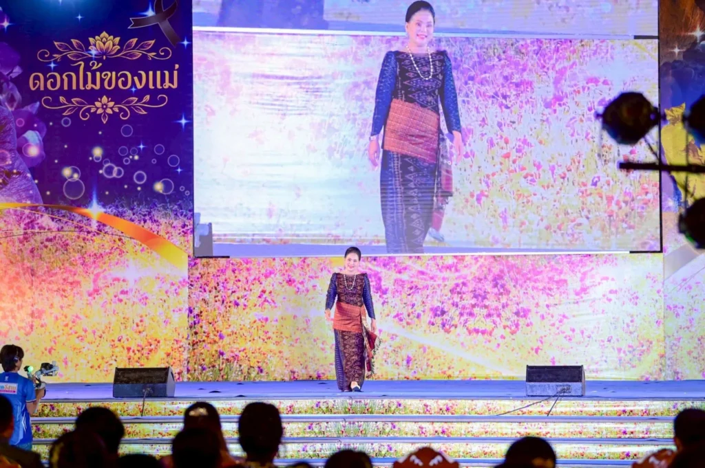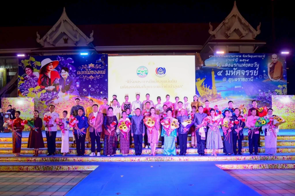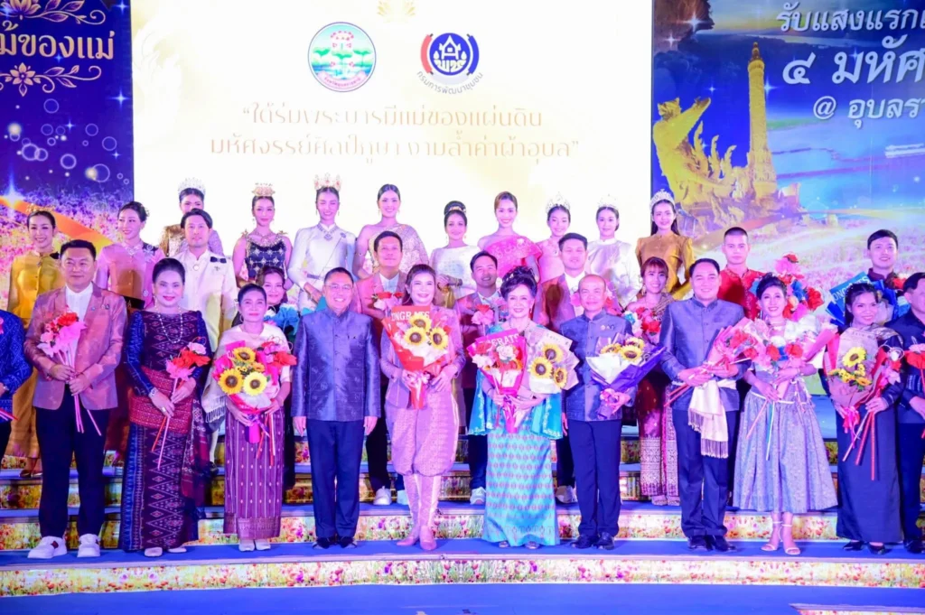 ในการนี้ มีว่าที่ร้อยตรีกรกฎ ประเสริฐวงษ์ ร้อยตรีสรมงคล มงคละสิริ และนายสมมาฏฐ์ โพธิ รองผู้ว่าราชการจังหวัดอุบลราชธานี พร้อมด้วยนางฐิติวรดา เทพเสนา นายกเหล่ากาชาดจังหวัดอุบลราชธานี ร่วมให้กำลังใจนางแบบ–นายแบบกิตติมศักดิ์ที่เข้าร่วมเดินแบบแฟชั่นโชว์ผ้าไทยอย่างอบอุ่น