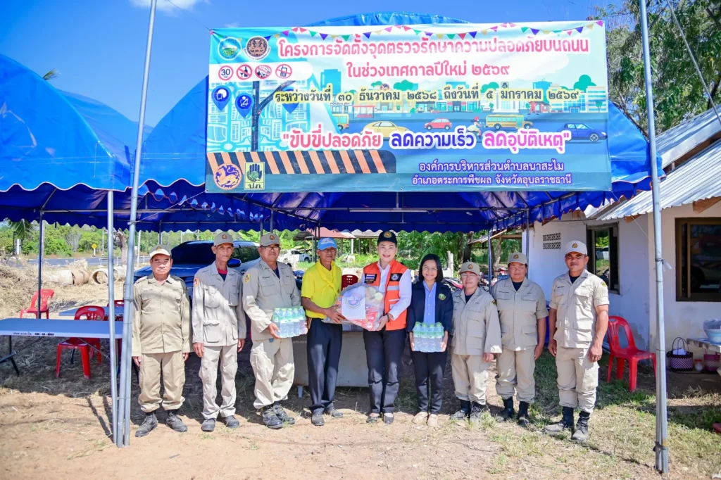 วันที่ 30 ธันวาคม 2568 นายกานต์ กัลป์ตินันท์ นายกองค์การบริหารส่วนจังหวัดอุบลราชธานี มอบหมายให้ นางกรรณิกา ตันติศิรินทร์ รองนายกองค์การบริหารส่วนจังหวัดอุบลราชธานี ลงพื้นที่ตรวจเยี่ยมตามจุดบริการประชาชนบริเวณจุดตรวจหลัก เพื่อรักษาความปลอดภัยทางถนนในช่วงเทศกาลปีใหม่ ประจำปี 2569