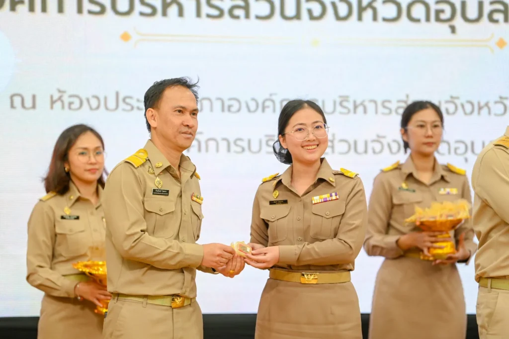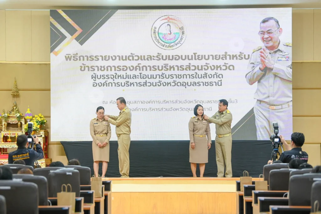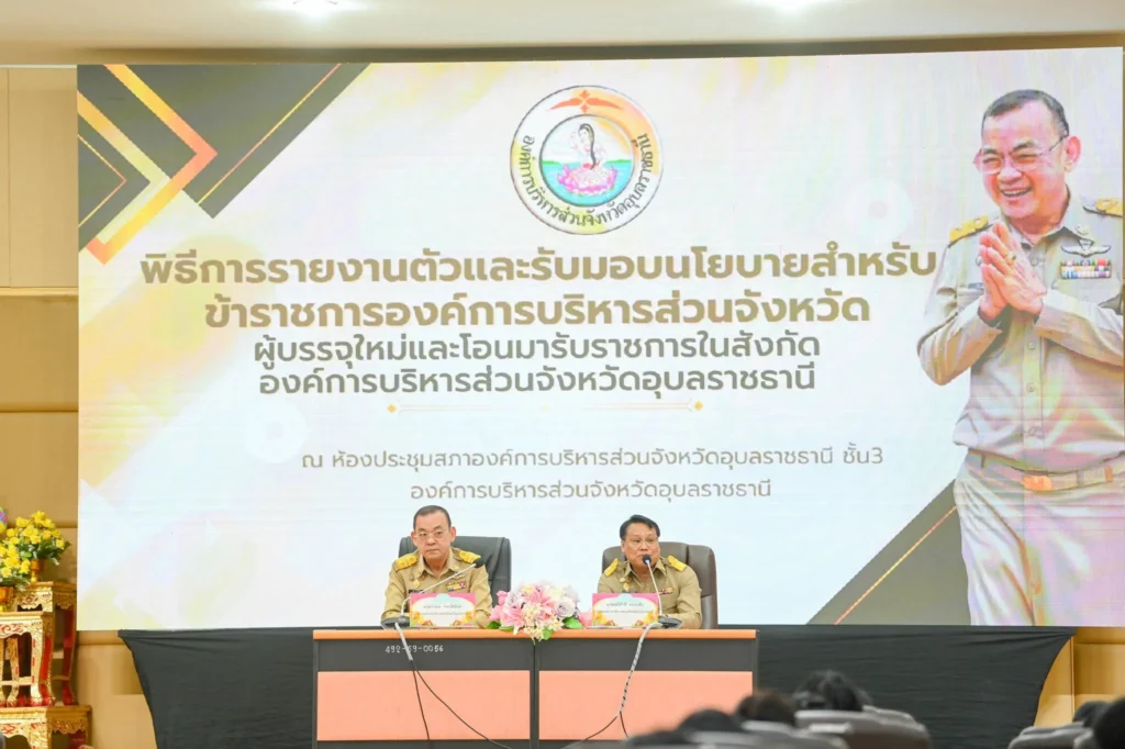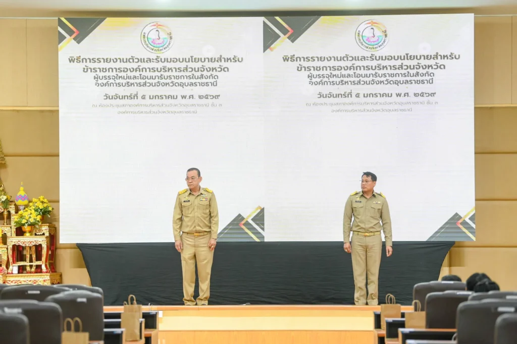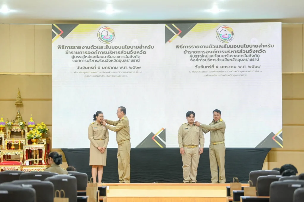 วันที่ 5 มกราคม 2569 เวลา 09.00 น. นายกานต์ กัลป์ตินันท์ นายกองค์การบริหารส่วนจังหวัดอุบลราชธานี เป็นประธานในพิธีการรายงานตัวและรับมอบนโยบายสำหรับข้าราชการองค์การบริหารส่วนจังหวัดผู้บรรจุใหม่ ตำแหน่งพยาบาลวิชาชีพปฏิบัติการจำนวน 55 ราย ตำแหน่งแพทย์แผนไทยปฏิบัติการ จำนวน 50 ราย รวมข้าราชการบรรจุใหม่ จำนวน 105 ราย และมีข้าราชการที่โอนมาสังกัดองค์การบริหารส่วนจังหวัดอุบลราชธานี จำนวน 7 ราย