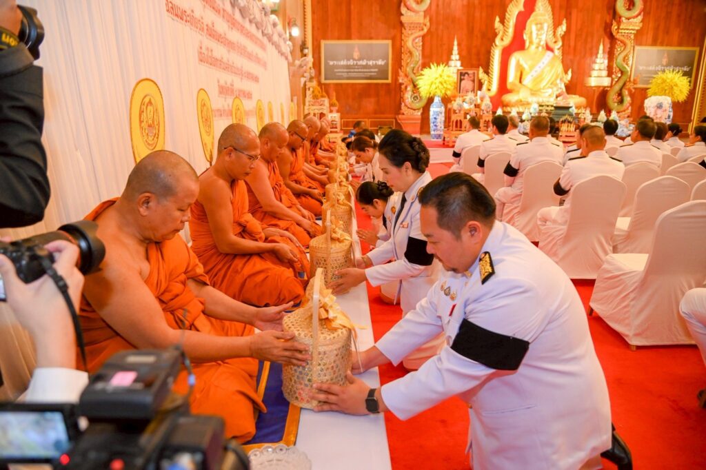 เพื่อให้ช่างทอผ้านำไปใช้สร้างรายได้และอาชีพที่ยั่งยืนให้กับชุมชนทอผ้าทั่วประเทศ อันเป็นคุณูปการต่อการอนุรักษ์และต่อยอดภูมิปัญญาไทย โดยมีนายณรงค์ เทพเสนา ผู้ว่าราชการจังหวัดอุบลราชธานี เป็นประธานในพิธี นำคณะตุลาการ อัยการ ทหาร ตำรวจ รองผู้ว่าราชการจังหวัด หัวหน้าส่วนราชการ ข้าราชการ เจ้าหน้าที่ ตลอดจนประชาชนจังหวัดอุบลราชธานี ร่วมประกอบพิธี เพื่อแสดงความจงรักภักดีและสำนึกในพระกรุณาธิคุณอย่างพร้อมเพรียง ณ วัดมหาวนาราม อำเภอเมืองอุบลราชธานี จังหวัดอุบลราชธานี