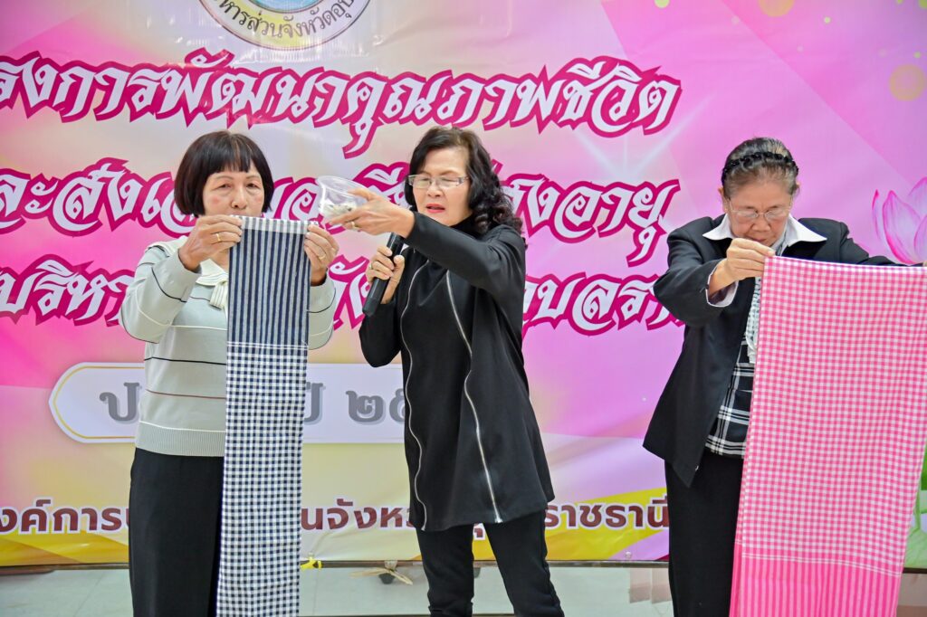 องค์การบริหารส่วนจังหวัดอุบลราชธานี ได้จัดโครงการดังกล่าวขึ้นเพื่อส่งเสริมคุณภาพชีวิต พัฒนาศักยภาพ และสร้างโอกาสด้านอาชีพให้แก่ผู้สูงอายุในพื้นที่ โดยมีผู้เข้าร่วมอบรมจำนวน 50 คน ภายในกิจกรรมประกอบด้วยการบรรยายให้ความรู้เกี่ยวกับการประกอบอาชีพ การสร้างรายได้เสริม และการแบ่งกลุ่มฝึกปฏิบัติศิลปะประยุกต์การตกแต่งผ้าขาวม้า เพื่อเพิ่มมูลค่าให้กับผลิตภัณฑ์ท้องถิ่น