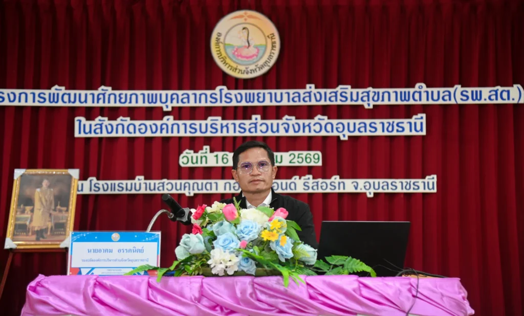 วันที่ 16 มกราคม 2569 เวลา 08.30 น. นายกานต์ กัลป์ตินันท์ นายกองค์การบริหารส่วนจังหวัดอุบลราชธานี มอบหมายให้ นายอาคม อรรคนิตย์ รองปลัดองค์การบริหารส่วนจังหวัดอุบลราชธานี เป็นประธานเปิดโครงการพัฒนาศักยภาพบุคลากรโรงพยาบาลส่งเสริมสุขภาพตำบล (รพ.สต.) ในสังกัดองค์การบริหารส่วนจังหวัดอุบลราชธานี โดยมี ผู้อำนวยการกองสาธารณสุข ผู้อำนวยการโรงพยาบาลส่งเสริมสุขภาพตำบล (รพ.สต.) ในสังกัดฯ และเจ้าหน้าที่ที่เกี่ยวข้อง เข้าร่วมเป็นเกียรติในพิธีเปิด ณ โรงแรมบ้านสวนคุณตา กอล์ฟ แอนด์ รีสอร์ท อ.วารินชำราบ จ.อุบลราชธานี