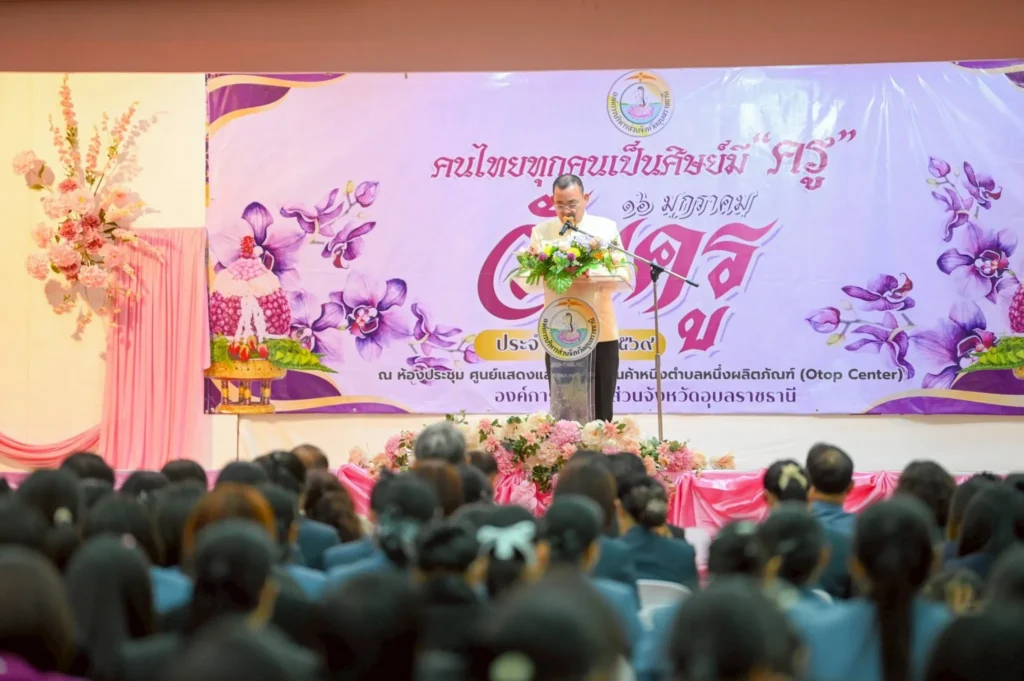 วันที่ 16 มกราคม 2569 เวลา 09.00 น. นายกานต์ กัลป์ตินันท์ นายกองค์การบริหารส่วนจังหวัดอุบลราชธานี เป็นประธานในพิธีงานวันครู ประจำปีงบประมาณ พ.ศ. 2569 ณ ห้องประชุมศูนย์แสดงสินค้า OTOP CENTER โดยมีคณะผู้บริหาร หัวหน้าส่วนราชการ ผู้อำนวยการโรงเรียน คณะครู ร่วมกิจกรรม
