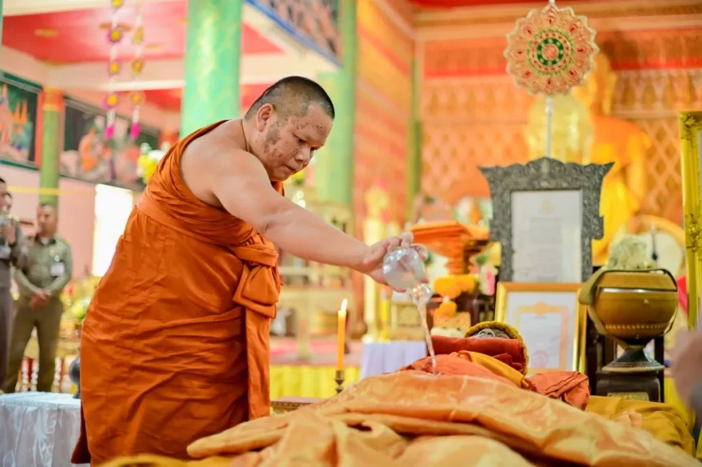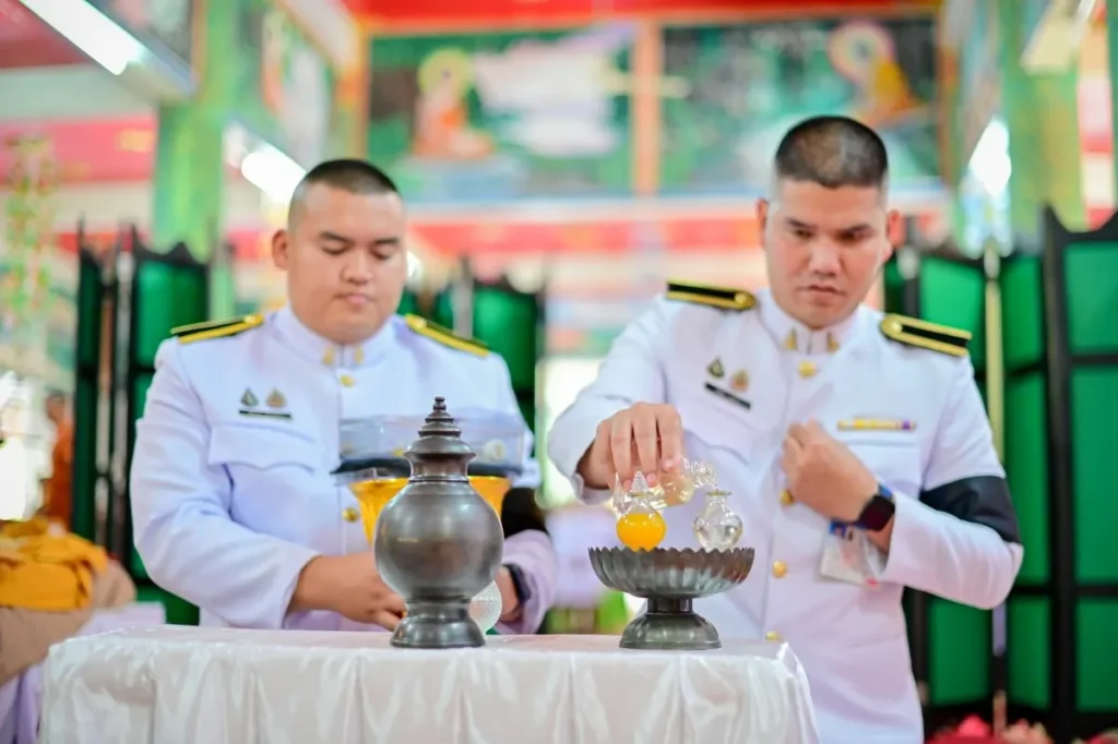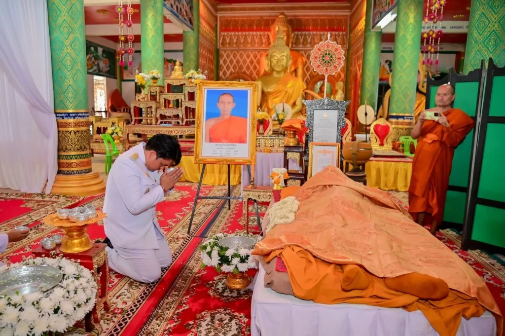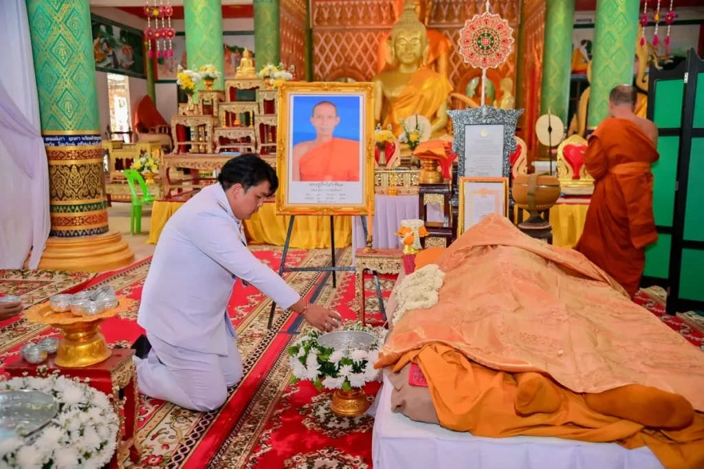 ในพิธีครั้งนี้ ได้รับเมตตาจาก พระเทพวราจารย์ เจ้าอาวาสวัดมณีวนาราม เจ้าคณะจังหวัดอุบลราชธานี เป็นประธานฝ่ายสงฆ์ พร้อมด้วยคณะสงฆ์จากทั่วจังหวัดอุบลราชธานีที่เดินทางมาร่วมสวดพระพุทธมนต์และไว้อาลัย