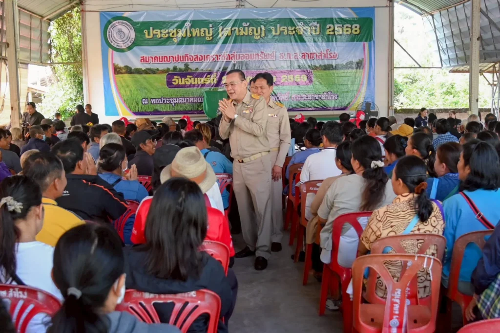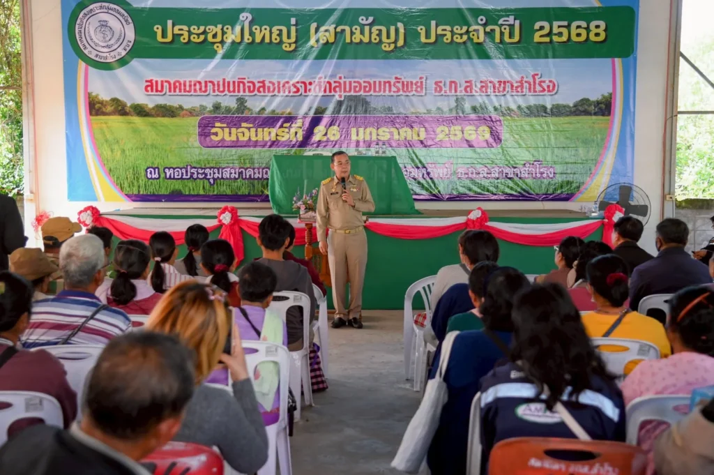 วันที่ 26 มกราคม 2569 เวลา 09.00 น. ณ หอประชุมสมาคมฌาปนกิจสงเคราะห์กลุ่มออมทรัพย์ ธ.ก.ส. สาขาสำโรง นายกานต์ กัลป์ตินันท์ นายกองค์การบริหารส่วนจังหวัดอุบลราชธานี เดินทางลงพื้นที่เพื่อพบปะพี่น้องสมาชิกและเข้าร่วมการประชุมใหญ่สามัญประจำปี 2568 โดยมี นายสุริยันต์ คุลธิ นายกเทศมนตรีตำบลสำโรง เป็นประธานในพิธีเปิดการประชุม พร้อมคณะผู้บริหารและสมาชิกสภาเทศบาลตำบลสำโรงร่วมให้การต้อนรับอย่างอบอุ่น ในการลงพื้นที่ครั้งนี้ นายกานต์ กัลป์ตินันท์ ได้ใช้โอกาสนี้พบปะพูดคุยกับพี่น้องประชาชน