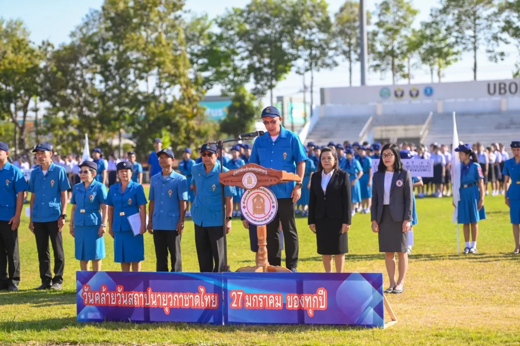 วันที่ 27 มกราคม 2569 เวลา 08.30 น. นายกานต์ กัลป์ตินันท์ นายกองค์การบริหารส่วนจังหวัดอุบลราชธานี มอบหมายให้ นางสาวปริยากร ทวีท้าว เลขานุการนายกองค์การบริหารส่วนจังหวัดอุบลราชธานี เข้าร่วมเป็นเกียรติในพิธีปฏิญาณตนและสวนสนาม เนื่องในโอกาส “วันคล้ายวันสถาปนายุวกาชาดไทย” ประจำปี 2569 ณ สนามฟุตบอล โรงเรียนกีฬาจังหวัดอุบลราชธานี