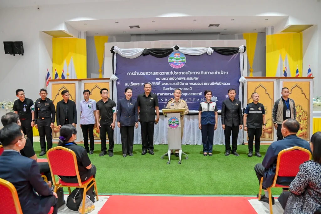 ในโอกาสนี้ ได้มีการตรวจเยี่ยมความพร้อมด้านความปลอดภัย การอำนวยความสะดวก และการดูแลประชาชนอย่างใกล้ชิด เพื่อให้การเดินทางเป็นไปด้วยความเรียบร้อย สงบ และสมพระเกียรติ