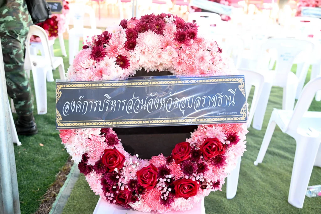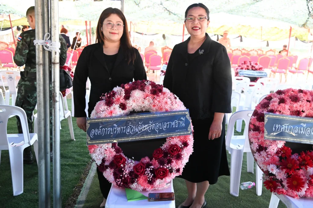 ภายในพิธีประกอบด้วยการวางพวงมาลาจากหน่วยงานภาครัฐ ภาคเอกชน และองค์กรต่างๆ ในจังหวัดอุบลราชธานี เพื่อแสดงความเคารพต่อดวงวิญญาณของเหล่านักรบผู้กล้า และเป็นการสร้างขวัญกำลังใจให้แก่ทหารผ่านศึกและครอบครัวที่พำนักอยู่ในพื้นที่จังหวัดอุบลราชธานีและจังหวัดใกล้เคียง