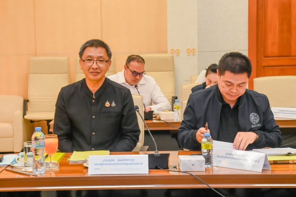 วันที่ 4 กุมภาพันธ์ 2569 เวลา 13.30 น.นายกานต์ กัลป์ตินันท์ นายก อบจ.อบ.มอบหมายให้ นางสาวจีรภัทร์ สมเทพ ผู้อำนวยการกองยุทธศาสตร์และงบประมาณ ร่วมประชุมคณะกรรมการบริหารงานกลุ่มจังหวัดแบบบูรณาการ (ก.บ.ก.) กลุ่มจังหวัดภาคตะวันออกเฉียงเหนือตอนล่าง 2 ครั้งที่ 1/2569 ณ ห้องประชุมพรหมวรรราช ชั้น 4 ศาลากลางจังหวัดอุบลราชธานี โดยมี นายณรงค์ เทพเสนา ผู้ว่าราชการจังหวัดอุบลราชธานี เป็นประธานการประชุม