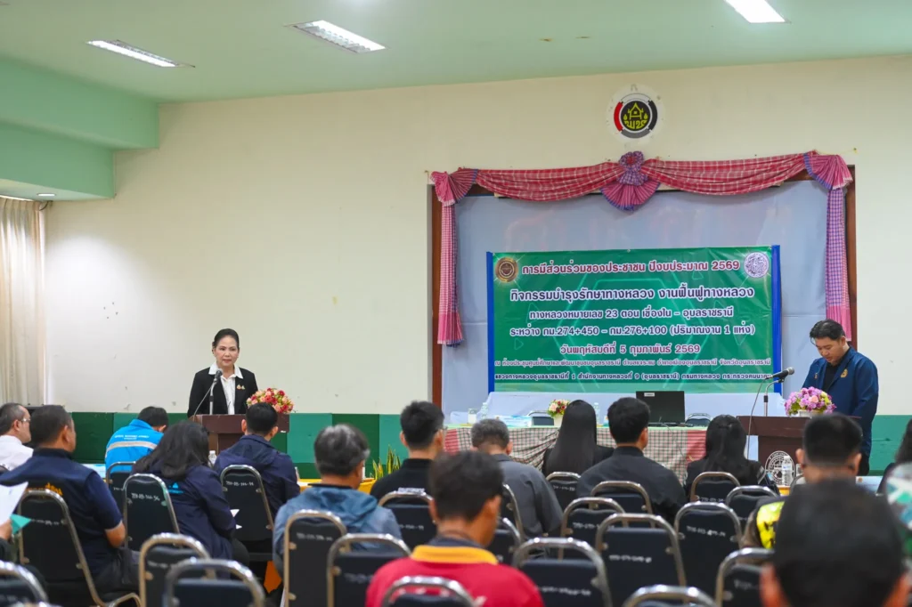 วันที่ 5 กุมภาพันธ์ 2569 เวลา 09.30 น. นายกานต์ กัลป์ตินันท์ นายกอบจ.อุบลฯ มอบหมายให้ นางกรรณิกา ตันติศิรินทร์ รองนายก อบจ.อุบลฯ (2) เข้าร่วมการประชุมกิจกรรมการมีส่วนร่วมของประชาชน ปีงบประมาณ 2569 ณ ห้องประชุมศูนย์ศึกษาและพัฒนาชุมชนอุบลราชธานี ต.แจระแม อ.เมืองอุบลฯ