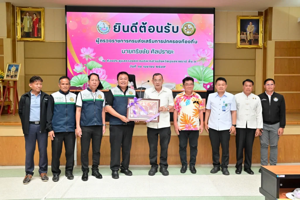 วันที่ 16 เมษายน 2569 เวลา 09.00 น. นายกานต์ กัลป์ตินันท์ นายก อบจ.อุบลฯ พร้อมคณะผู้บริหารให้การต้อนรับนายกริชชัย ศิลปรายะ ผู้ตรวจราชการกรมส่งเสริมการปกครองท้องถิ่น ซึ่งรับผิดชอบเขตตรวจราชการที่ 14 กลุ่มจังหวัดภาคตะวันออกเฉียงเหนือตอนล่าง 2 ประกอบด้วยจังหวัด(ยโสธร,ศรีสะเกษ,อำนาจ เจริญ และอุบลราชธานี) ในโอกาสเดินทางมาตรวจราชการ ณ จังหวัดอุบลราชธานี ที่ ห้องประชุมสภาฯ ชั้น 3 โดยมีคณะผู้บริหาร ประธานสภา หัวหน้าส่วนราชการ สมาชิกสภา และบุคลากรที่เกี่ยวข้องเข้าร่วมในครั้งนี้
