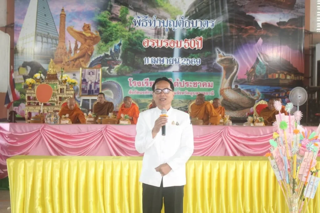 วันที่ 11 เมษายน 2569 นายกานต์ กัลป์ตินันท์ นายก อบจ.อุบลราชธานี มอบหมายให้ นายวิชิต ฉัตรสุวรรณ เลขานุการนายก อบจ.อุบลฯ เข้าร่วมเป็นเกียรติในงาน “คืนสู่เหย้า โรงเรียนไร่ใต้ประชาคม” ณ โรงเรียนไร่ใต้ประชาคม อ.พิบูลมังสาหาร จ.อุบลราชธานี
