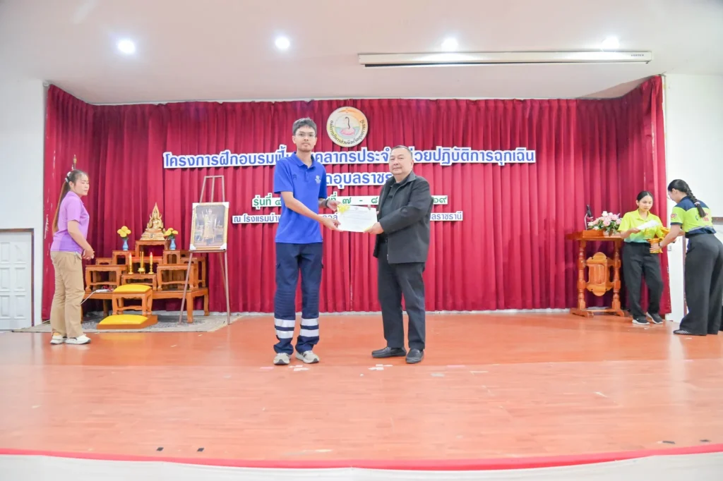 วันที่ 8 เมษายน 2569 เวลา 15.30 น. นายกานต์ กัลป์ตินันท์ นายก อบจ.อุบลราชธานี มอบหมายให้ นายพชร เกาสายะพันธ์ รองนายก อบจ.อุบลราชธานี เป็นประธานในพิธีปิด และมอบใบวุฒิบัตร แก่ผู้ผ่านการอบรมโครงการฟื้นฟูบุคลากรประจำหน่วยปฏิบัติการฉุกเฉิน รุ่นที่ 4 ณ โรงแรมบ้านสวนคุณตา กอล์ฟ แอนด์ รีสอร์ท ต.คำน้ำแซบ อ.วารินชำราบ