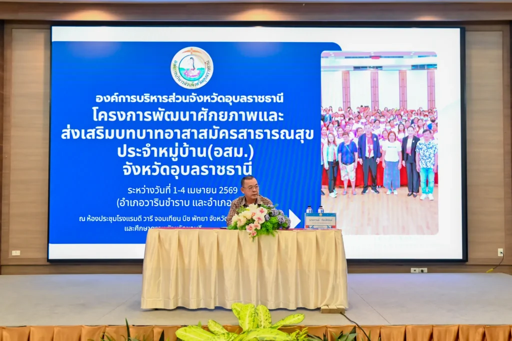 วันที่ 2 เมษายน 2569 เวลา 08.30 น. นายกานต์ กัลป์ตินันท์ นายก อบจ.อุบลฯ เป็นประธานเปิดโครงการพัฒนาศักยภาพและส่งเสริมบทบาทอาสาสมัครสาธารณสุขประจำหมู่บ้าน (อสม.) จังหวัดอุบลราชธานี รุ่นที่ 1ระหว่างวันที่ 1 – 4 เมษายน 2569 โดยมีคณะผู้บริหาร สมาชิกสภา อบจ.อบ. หัวหน้าส่วนราชการ และเจ้าหน้าที่ที่เกี่ยวข้อง เข้าร่วมกิจกรรม ณ โรงแรม ดีวารี จอมเทียน บีช พัทยา จังหวัดชลบุรี และศึกษาดูงาน จังหวัดชลบุรี
