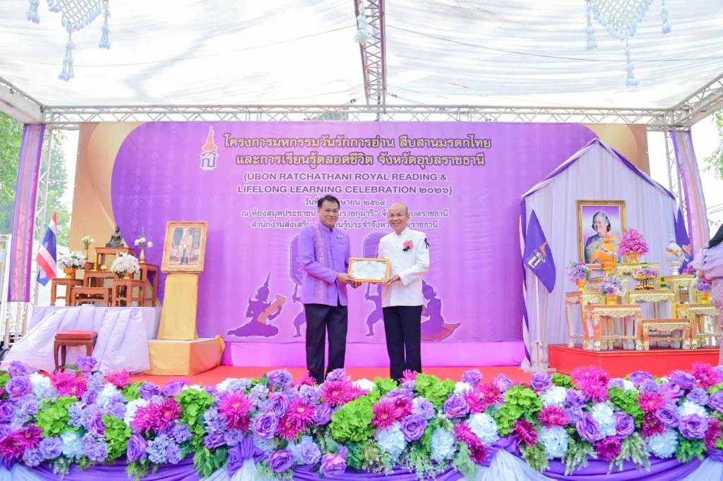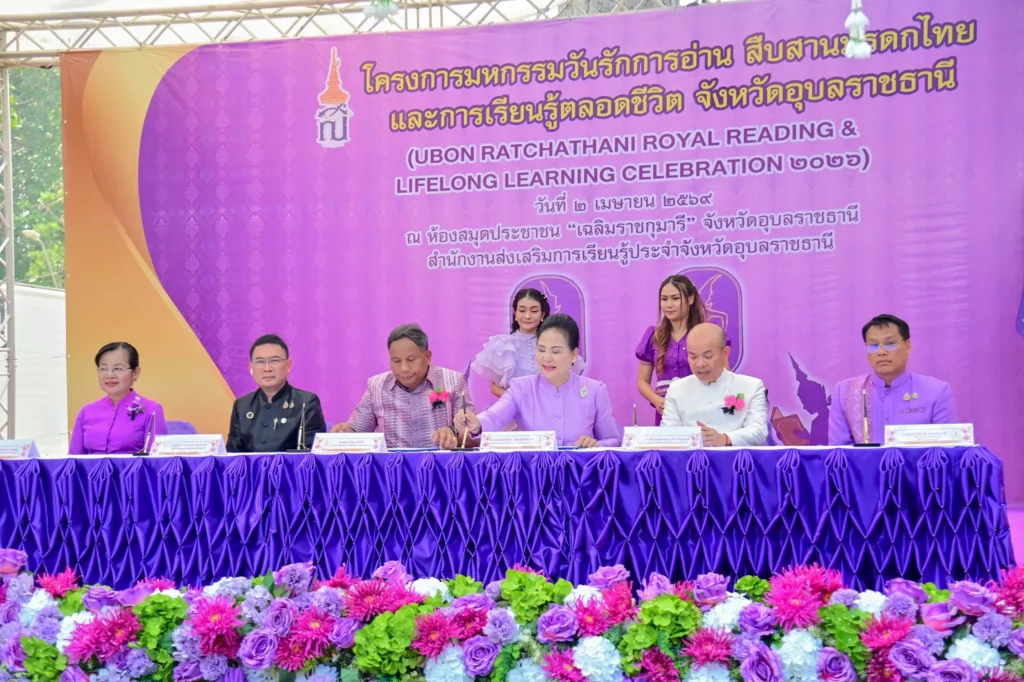 วันที่ 2 เมษายน 2569 เวลา 08.30 น. นายกานต์ กัลป์ตินันท์ นายก อบจ.อุบลฯ มอบหมายให้ นางกรรณิกา ตันติศิรินทร์ รองนายก อบจ.อุบลฯ เข้าร่วมกิจกรรม “วันรักการอ่านสืบสานมรดกไทย และการเรียนรู้ตลอดชีวิต จังหวัดอุบลราชธานี (Ubon Ratchathani Royal Reading & Lifelong Learning Celebration 2569)”