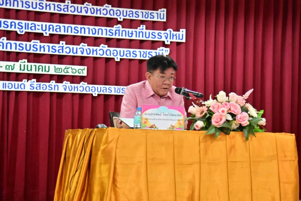 วันที่ 6 มีนาคม 2569 นายกานต์ กัลป์ตินันท์ นายก อบจ.อบ. มอบหมายให้นายประพนธ์ โชควิวัฒนวนิช รองนายกฯ เป็นประธานเปิด โครงการพัฒนาศักยภาพบุคลากร อบจ.อุบลราชธานี หลักสูตรปฐมนิเทศข้าราชการ ข้าราชการครู และบุคลากรทางการศึกษาที่บรรจุใหม่และรับโอนมาปฏิบัติราชการในสังกัด