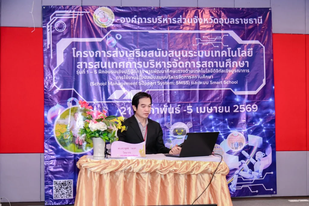 นายกานต์ กัลป์ตินันท์ นายก อบจ.อุบลราชธานี มอบหมายให้ นายอภิศักดิ์ ทองกลึง ปลัดอบจ.อุบลราชธานี พบปะผู้เข้าร่วมโครงการส่งเสริมสนับสนุนระบบเทคโนโลยีสารสนเทศ การบริหารจัดการสถานศึกษา ประจำปีงบประมาณ พ.ศ. 2569 รุ่นที่ 3 ที่โรงแรมแลโขง ริเวอร์รีสอร์ท อ.เขมราฐ โดยมี ผู้บริหารสถานศึกษา ข้าราชการครู และบุคลากรทางการศึกษา โรงเรียนแก้งเหนือพิทยาคม และโรงเรียนนาคำวิทยา เข้าร่วมโครงการฯ