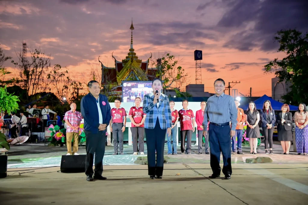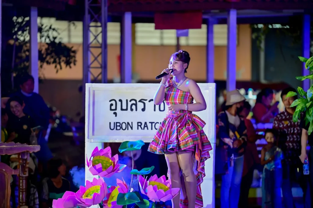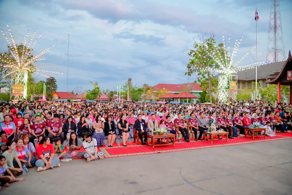 บรรยากาศบริเวณหน้าที่ว่าการอำเภอเดชอุดม จังหวัดอุบลราชธานี เต็มไปด้วยความคึกคัก ประชาชน นักเรียน และแฟนเพลงร่วมให้กำลังใจอย่างอบอุ่น