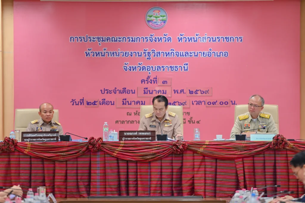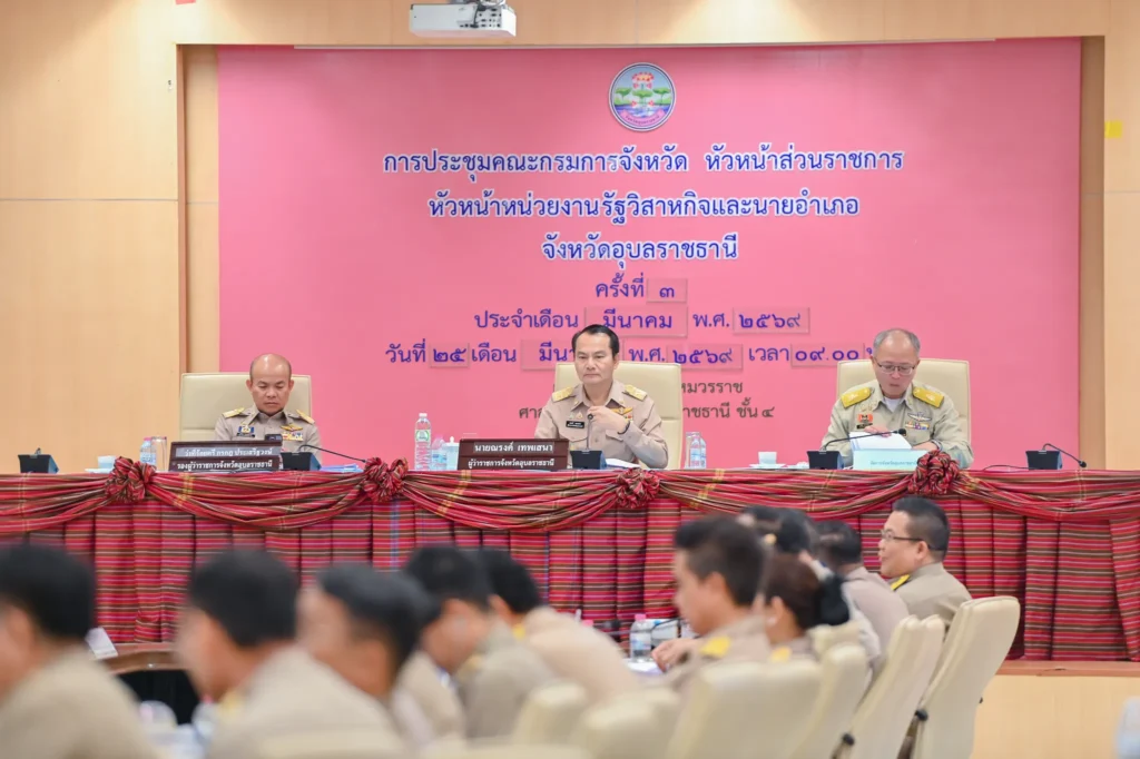 โดยมีนายณรงค์ เทพเสนา ผู้ว่าราชการจังหวัดอุบลราชธานี เป็นประธานในการประชุม ณ ห้องประชุมพรหมวรราช ชั้น 4 ศาลากลางจังหวัดอุบลราชธานี