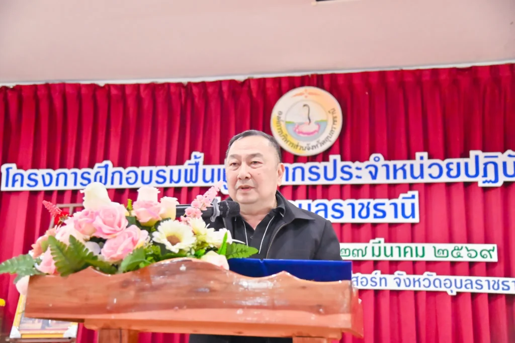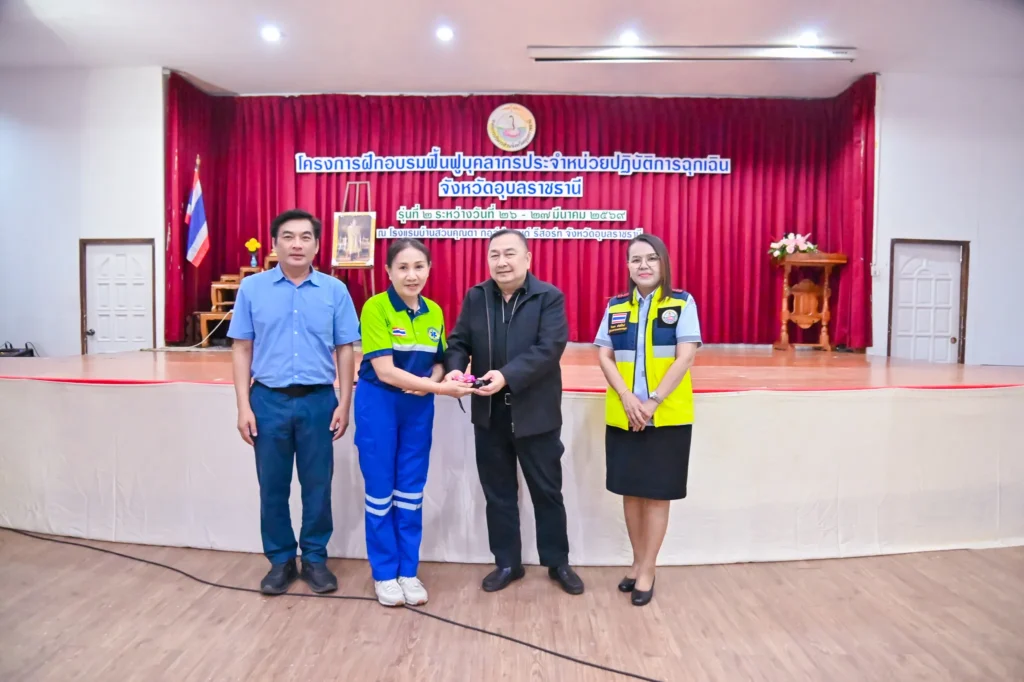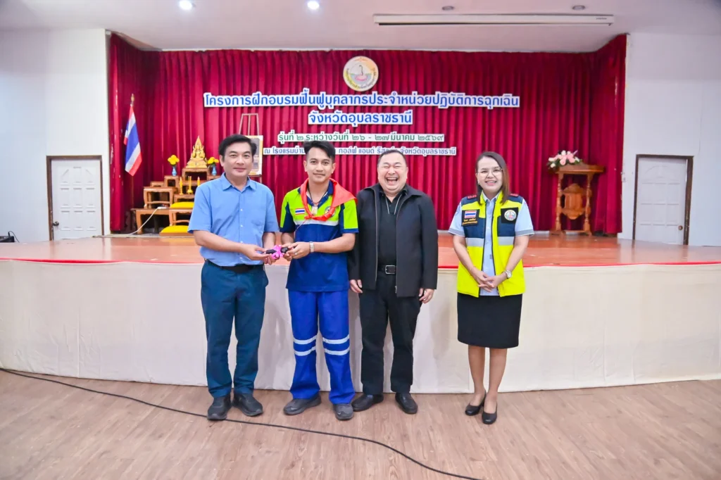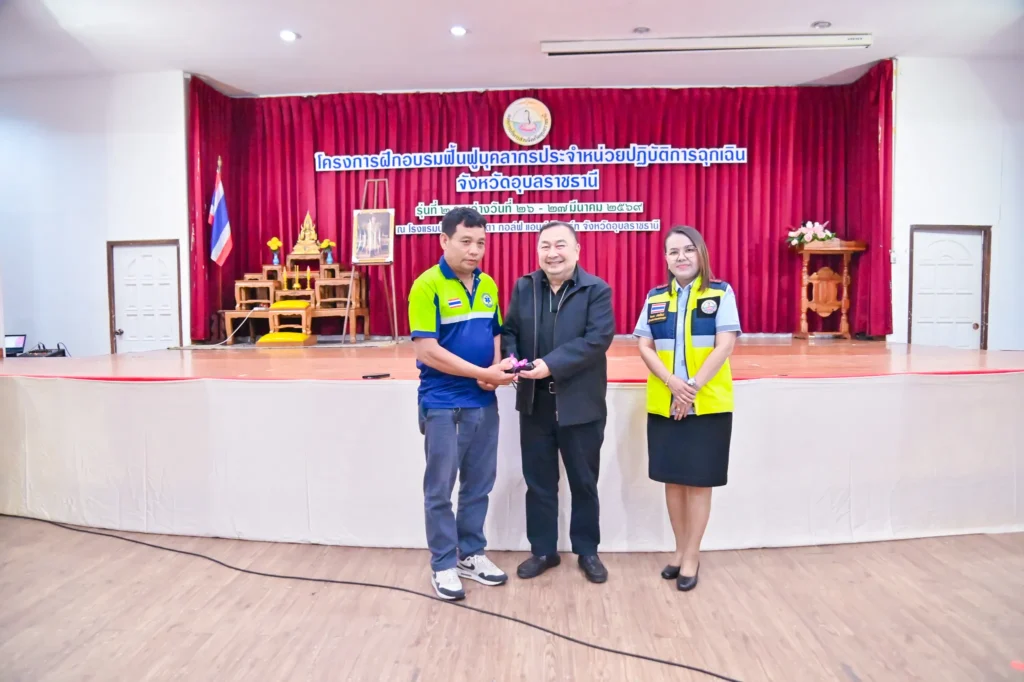 วันที่ 27 มีนาคม 2569 เวลา 16.30 น. นายกานต์ กัลป์ตินันท์ นายก อบจ.อุบลฯ มอบหมายให้ นายพชร เกาสายะพันธ์ รองนายก อบจ.อุบลฯ เป็นประธานในพิธีปิด และมอบใบวุฒิบัตร แก่ผู้ผ่านการอบรมโครงการฟื้นฟูบุคลากรประจำหน่วยปฏิบัติการฉุกเฉิน รุ่นที่ 2 ณ โรงแรมบ้านสวนคุณตา กอล์ฟ รีสอร์ท ตำบลคำน้ำแซบ อำเภอวารินชำราบ การอบรมครั้งนี้ มีบุคลากรหน่วยปฏิบัติการฉุกเฉินเข้าร่วมและผ่านการอบรม จำนวน 170 คน
