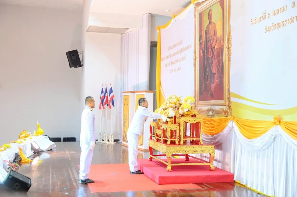 วันที่ 6 เมษายน 2569 เวลา 08.00 น . นางกรรณิกา ตันติศิรินทร์ รองนายก อบจ.อุบลฯ นำข้าราชการในสังกัด ร่วมพิธีวางพานพุ่มดอกไม้สด ถวายราชสักการะ เนื่องใน “วันจักรี” เพื่อระลึกถึงพระมหากรุณาธิคุณ พระบาทสมเด็จพระพุทธยอดฟ้าจุฬาโลกมหาราช และมหาจักรีบรมราชวงศ์ โดยมี นายณรงค์ เทพเสนา ผู้ว่าราชการจังหวัดอุบลราชธานี เป็นประธานในพิธี พร้อมด้วยเหล่ากาชาดจังหวัดอุบลราชธานี หัวส่วนราชการ ทหาร ตำรวจ รัฐวิสาหกิจ และองค์กรปกครองส่วนท้องถิ่น เข้าร่วมพิธี ณ หอประชุมจังหวัดอุบลราชธานี ศาลากลางจังหวัดอุบลราชธานี