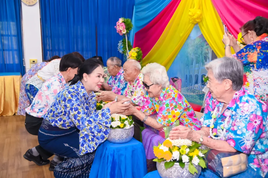 ภายในงานจัดขึ้นอย่างอบอุ่นและเปี่ยมด้วยบรรยากาศแห่งความสุข เพื่อส่งเสริมความสัมพันธ์ในครอบครัว และยกย่องคุณค่าของผู้สูงอายุ โดยมีกิจกรรมหลากหลาย อาทิ การรำวงรื่นเริงเถลิงศกใหม่ รำวงสงกรานต์ การรดน้ำขอพรพระ รวมถึงการรดน้ำขอพรผู้สูงอายุ