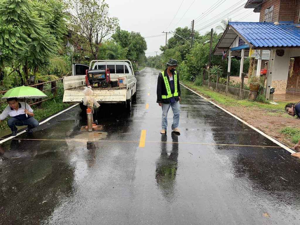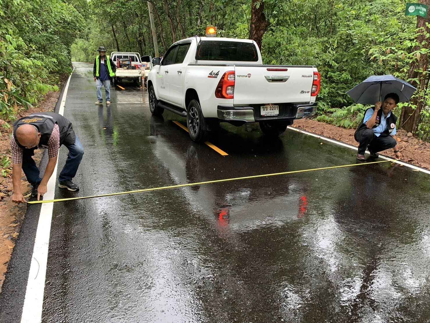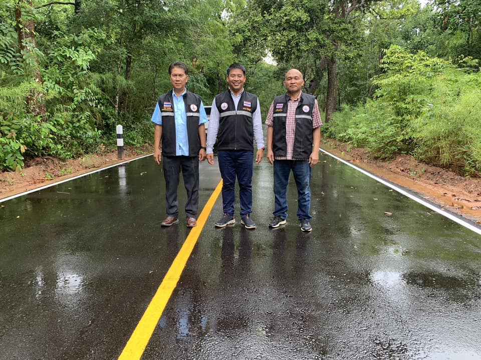 นำโดยนายสมาน ขั้นชัยภูมิ ผู้อำนวยการกองช่าง นายวรากร บุราไกร หัวหน้าฝ่ายวิศวกรรมโยธา นายนิคม สมน้อย หัวหน้าฝ่ายควบคุมการก่อสร้าง ออกตรวจสอบโครงการปรับปรุงถนนลูกรังผิวจราจร Asphaltic Concrete (โดยวิธี Pavement In – Place Recycling) สาย อบ.ถ.1 – 0031 บ้านน้ำคำแดง – บ้านคำไหล อำเภอเหล่าเสือโก้ก จังหวัดอุบลราชธานี