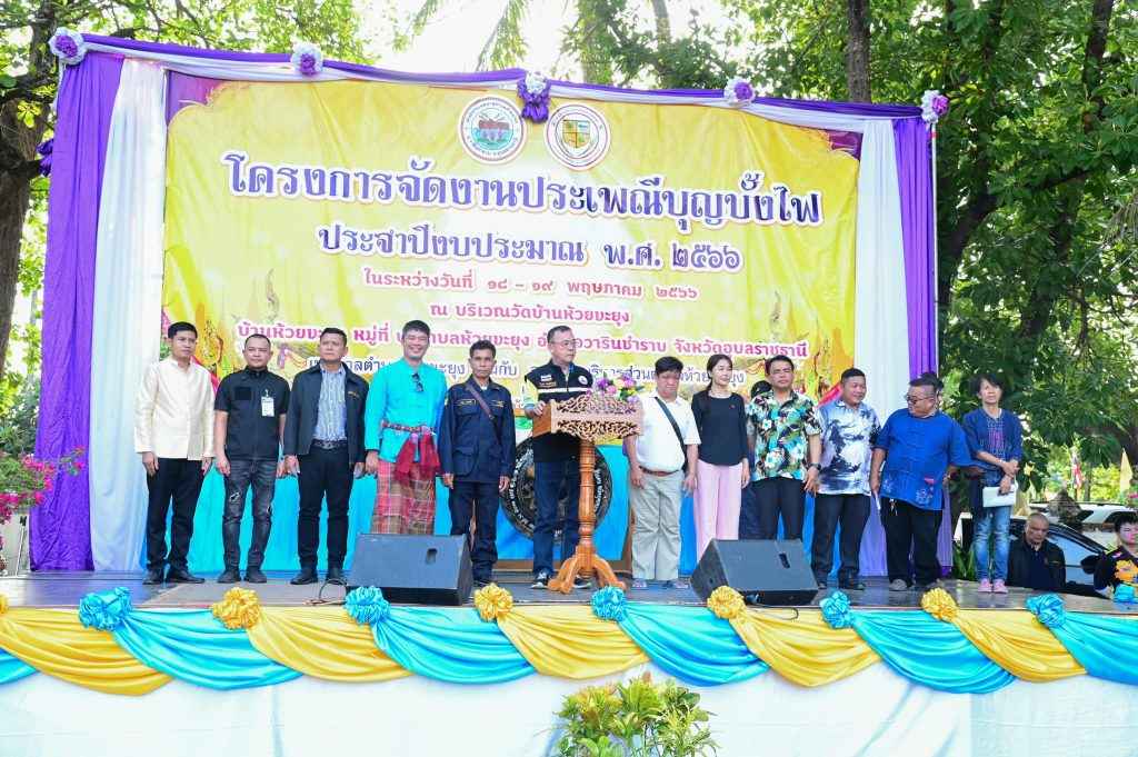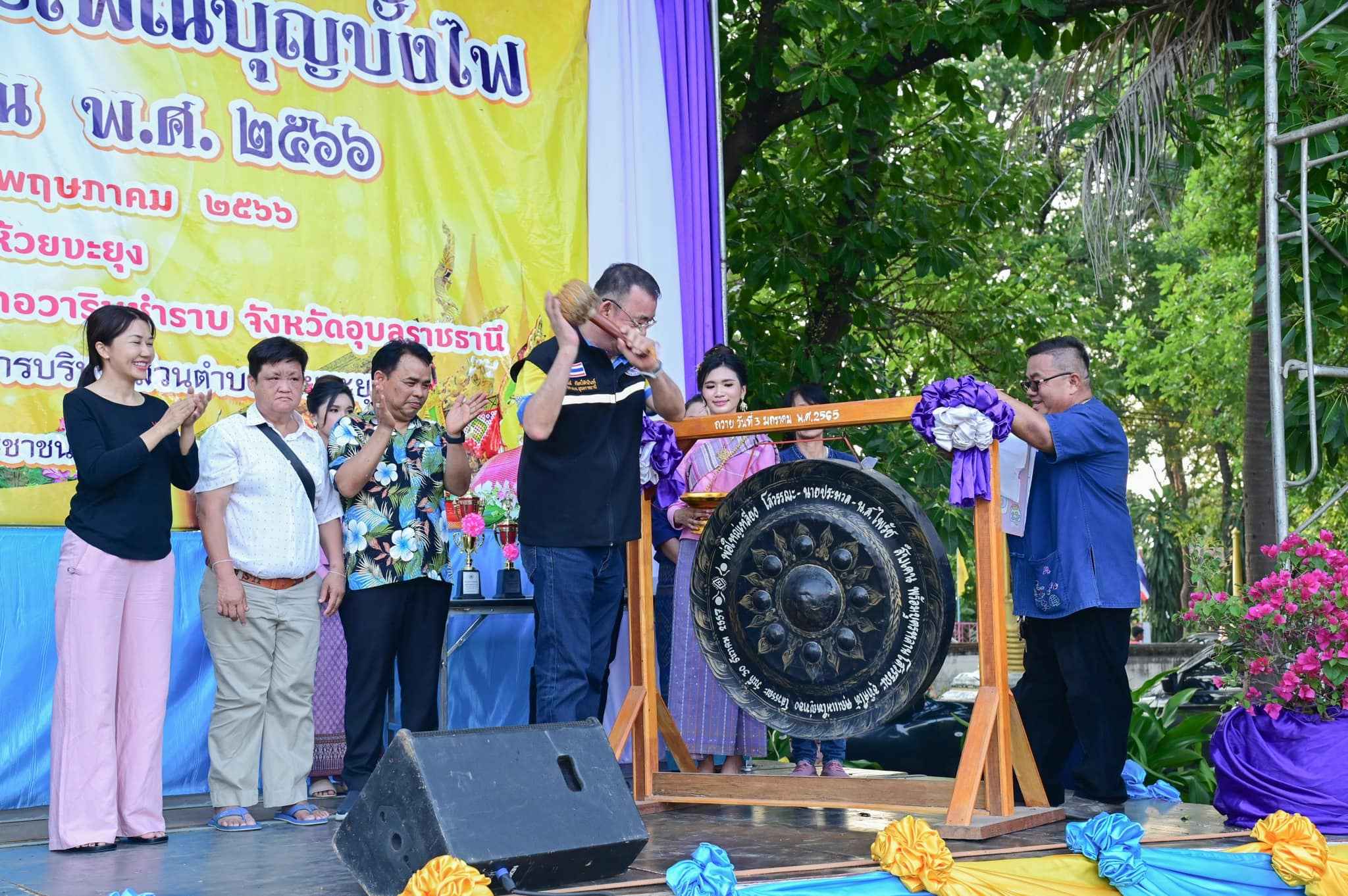 ดังนั้นจึงร่วมกับผู้นำท้องถิ่น คณะกรรมการหมู่บ้านและประชาชนในเขตพื้นที่ จัดงานประเพณีบุญบั้งไฟ ประจำปี 2566 ขึ้น